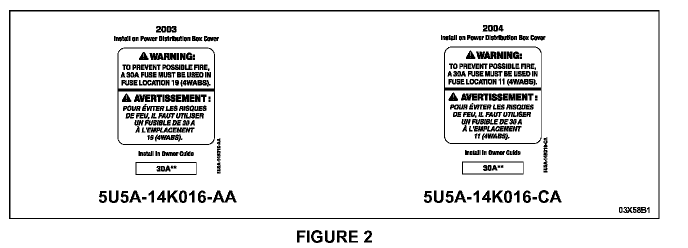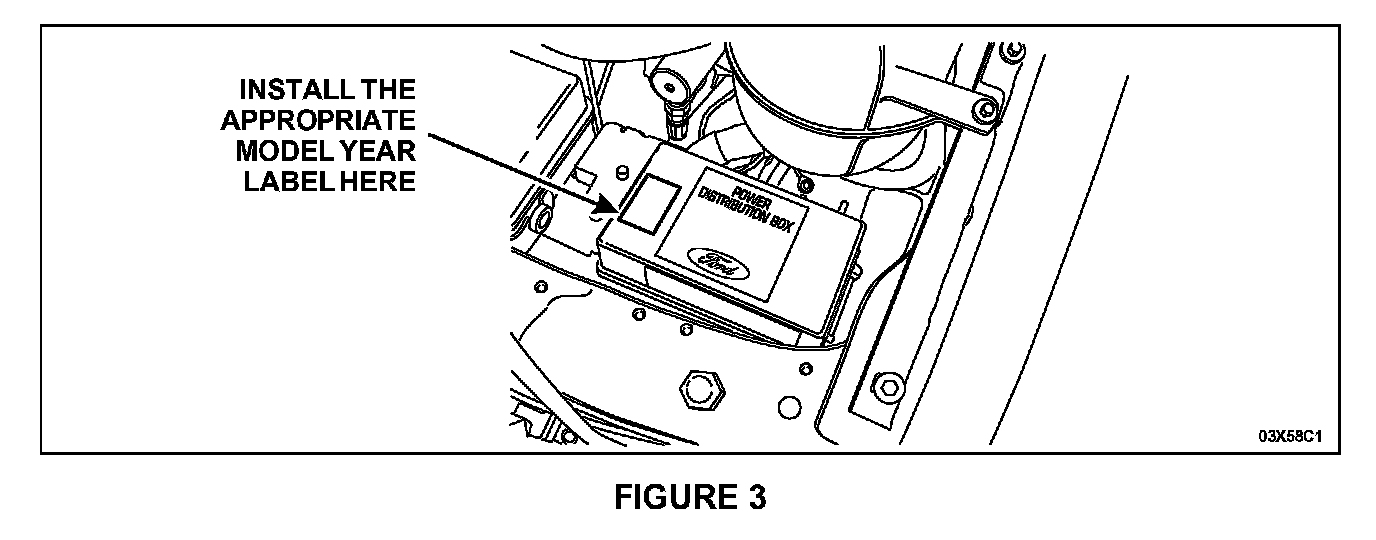 5. NOTE: Two (2) sheets of labels are provided in the service kit. One sheet is for 2003 model year vehicles and one for 2004 model year vehicles. Use the appropriate model year sheet and discard the remaining sheet. See Figure 2.