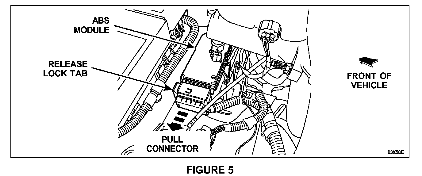 3. Disconnect the module wire harness connector by releasing the lock tab and pulling the connector from the module. See Figure 5.