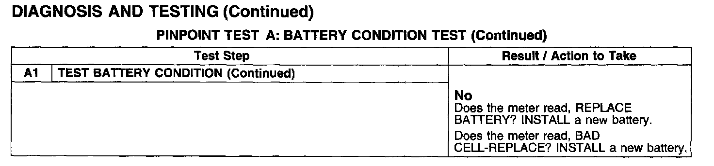 PINPOINT TEST A: BATTERY CONDITION TEST