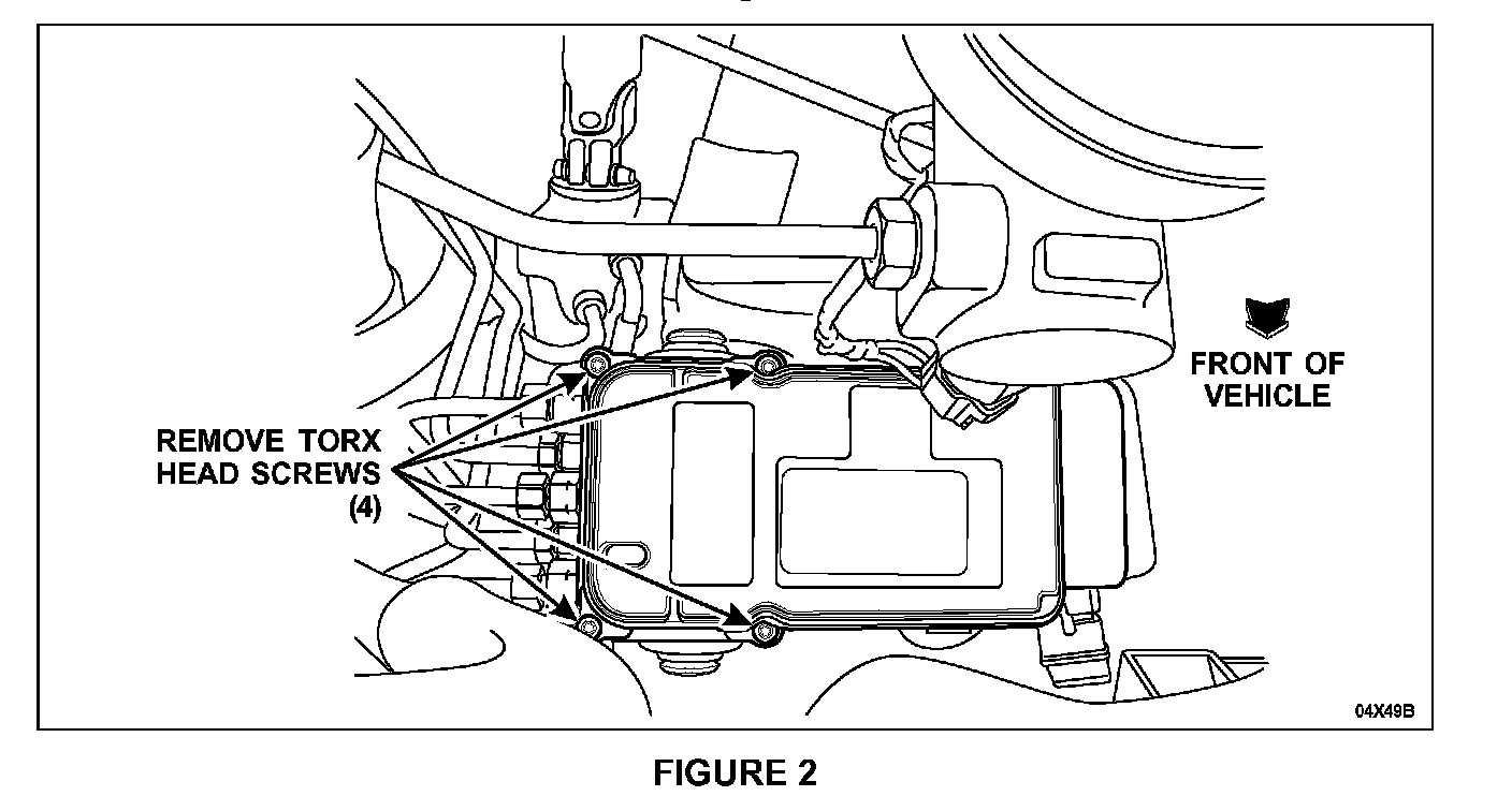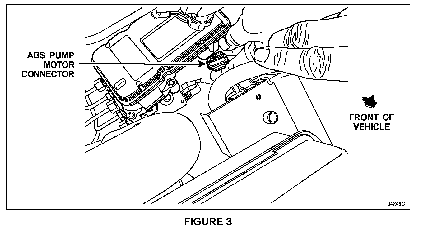 5. Lift the module slightly and disconnect the ABS pump motor connector, then remove the module from the vehicle. See Figure 3.