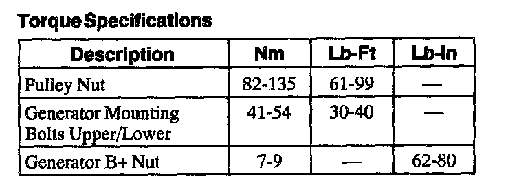 Torque Specifications:
