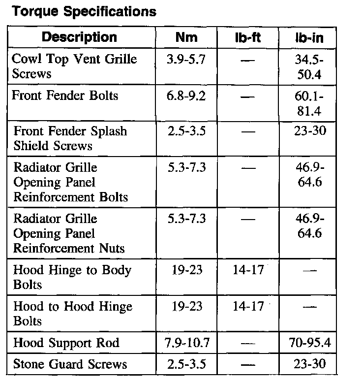 Torque Specifications: