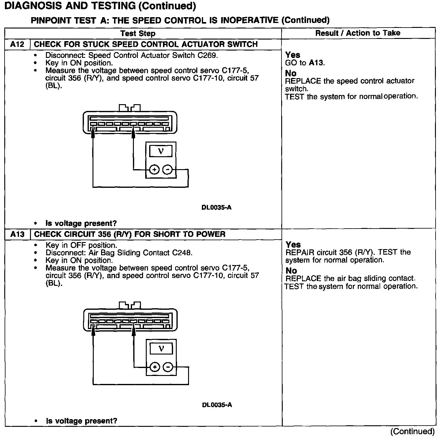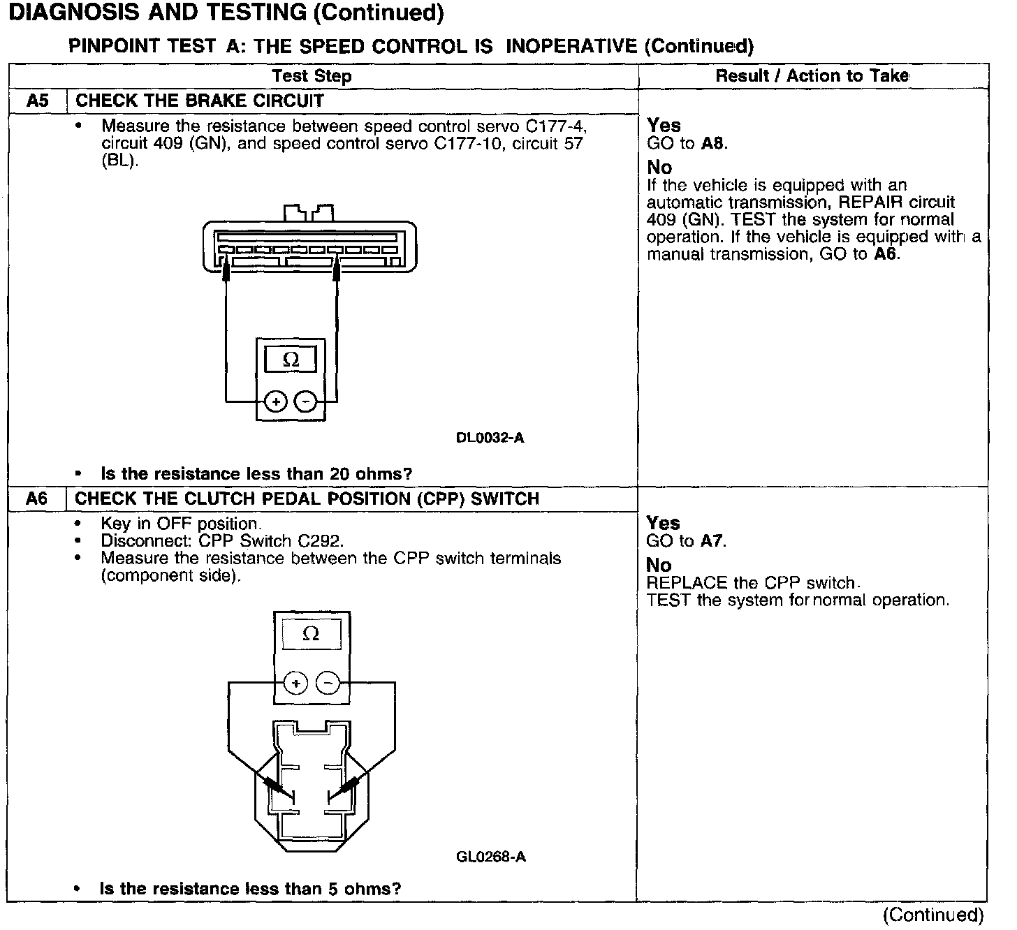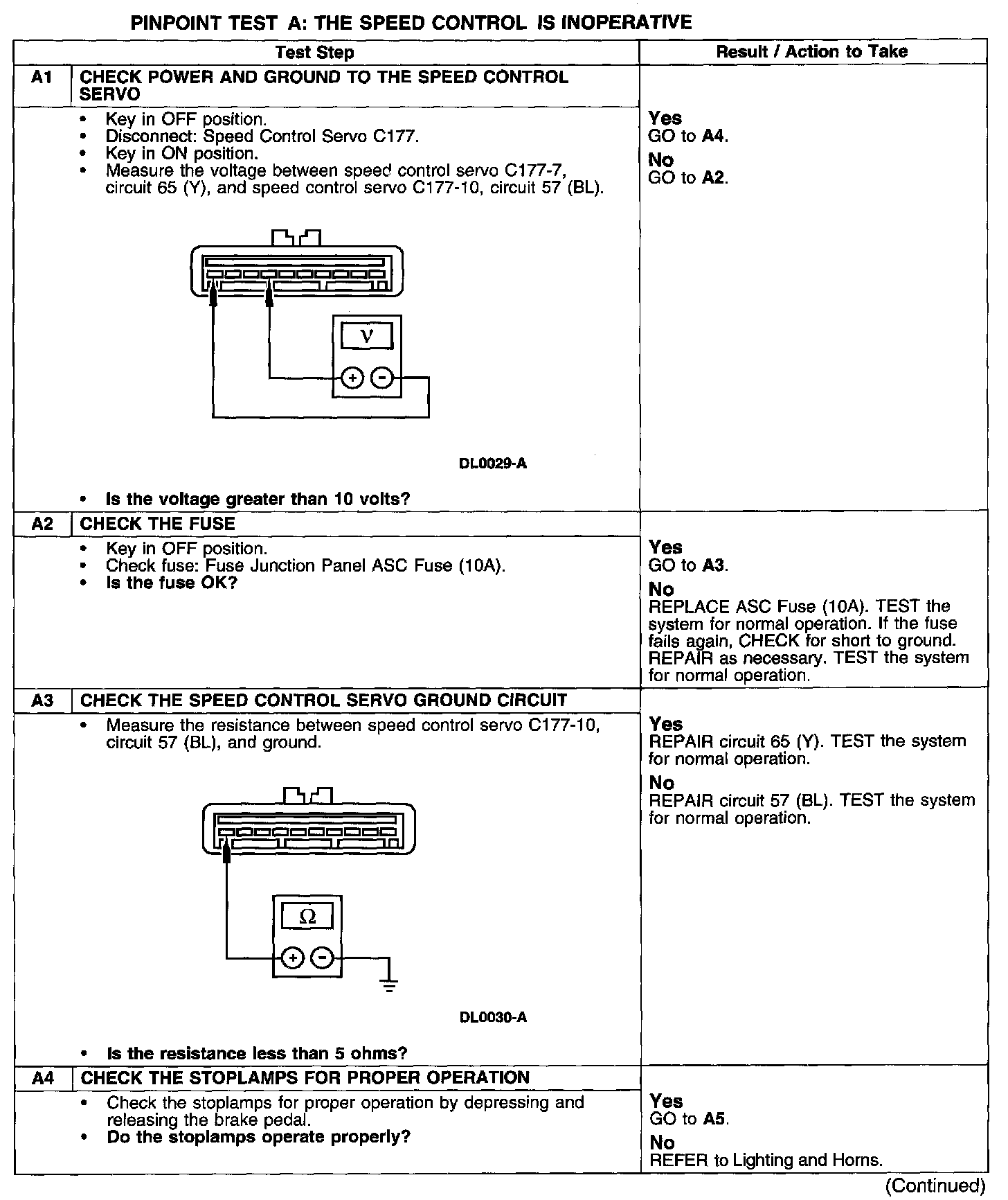 PINPOINT TEST A: THE SPEED CONTROL IS INOPERATIVE