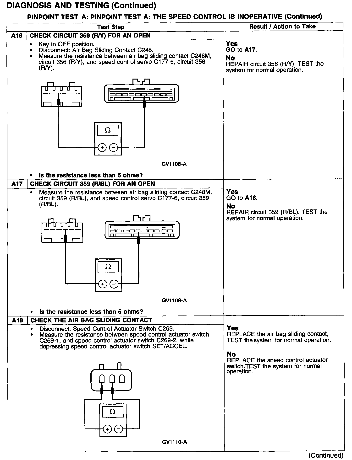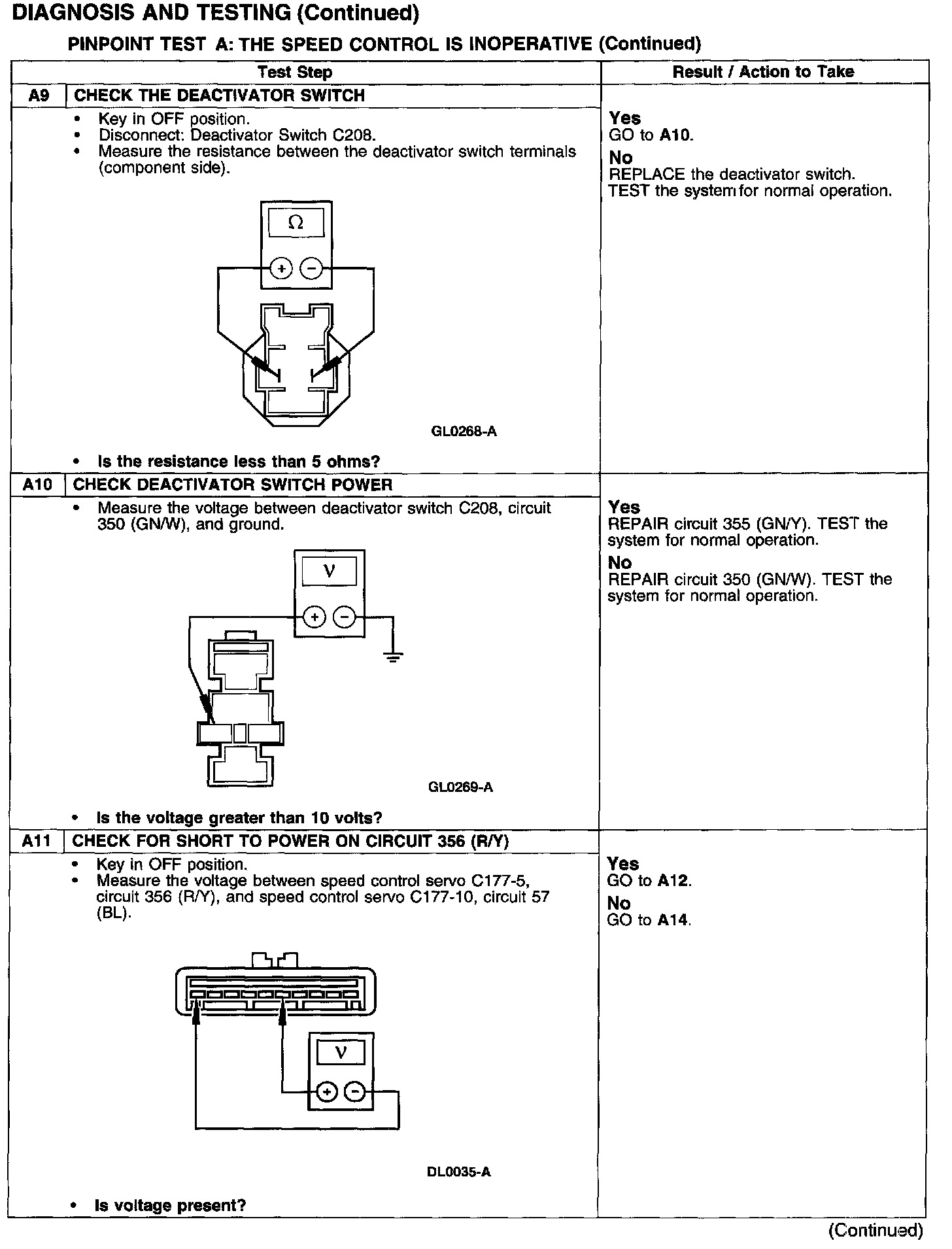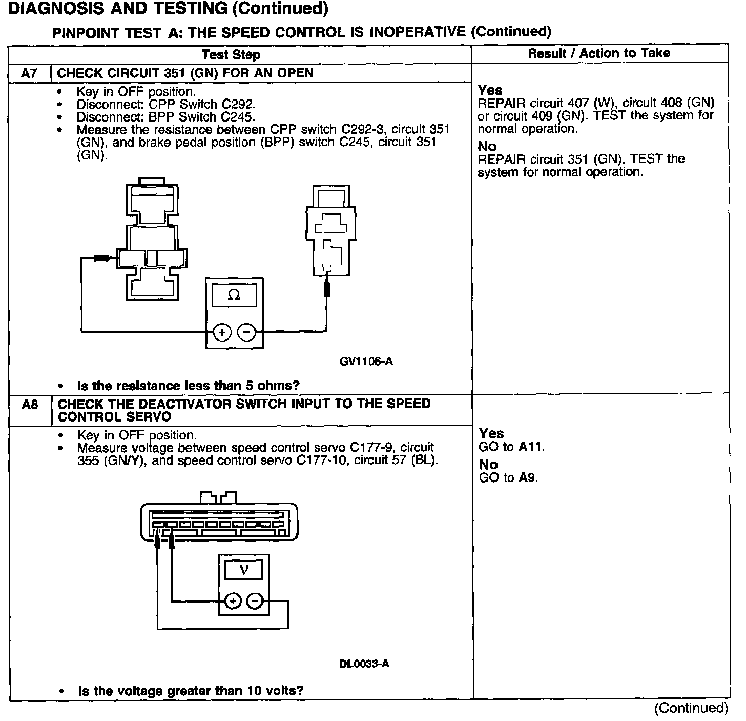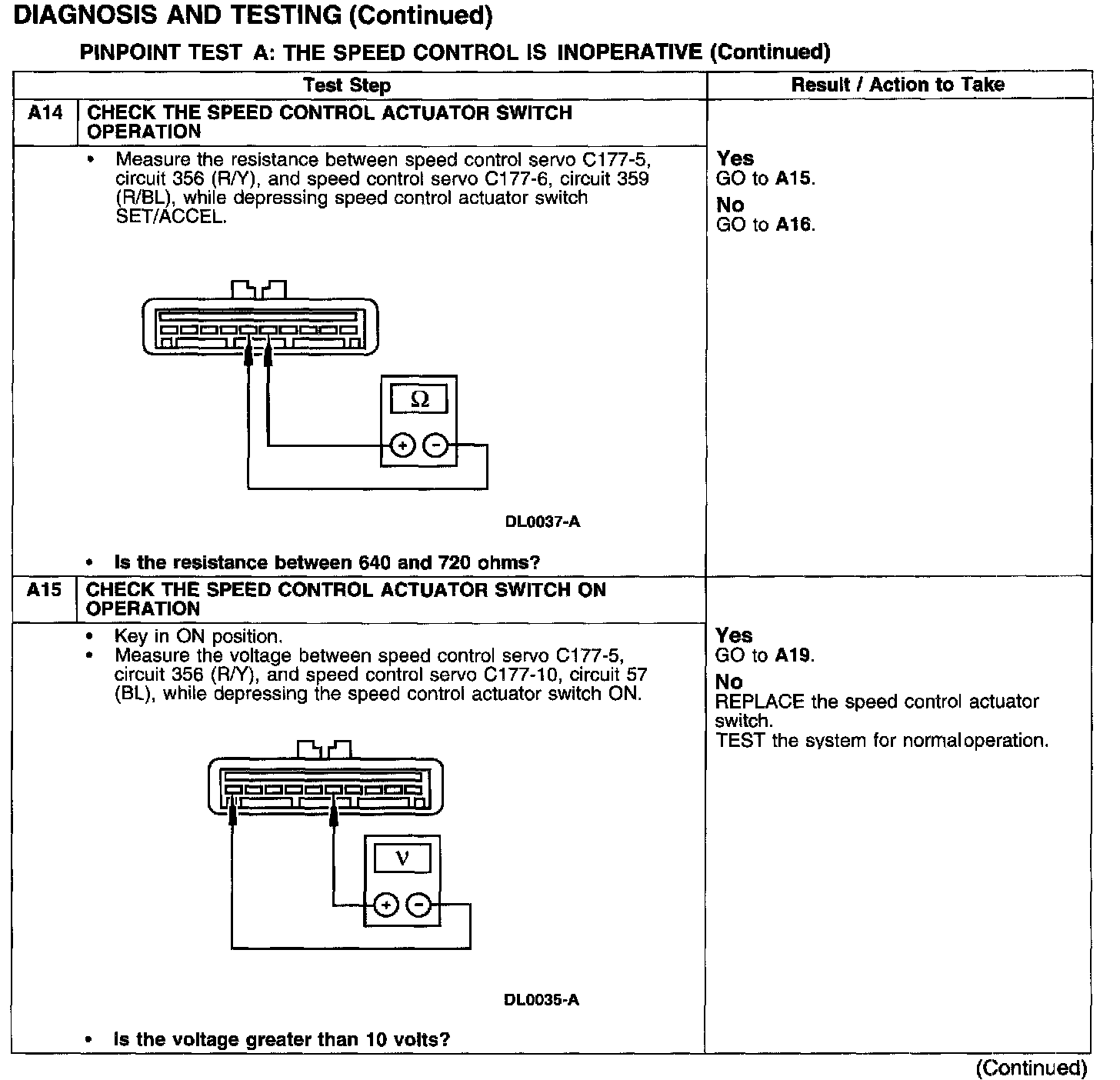 PINPOINT TEST A: THE SPEED CONTROL IS INOPERATIVE