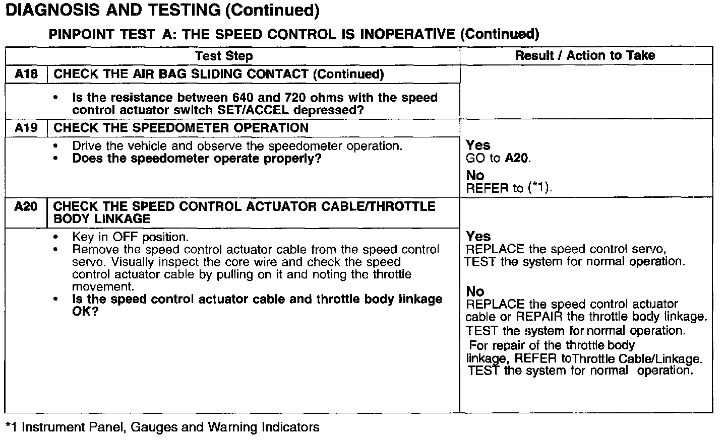 Test A: Speed Control Is Inoperative