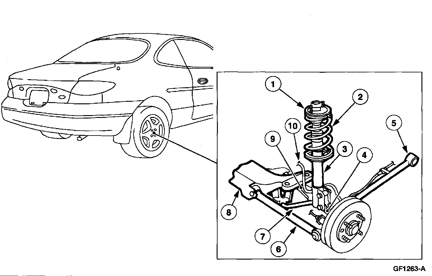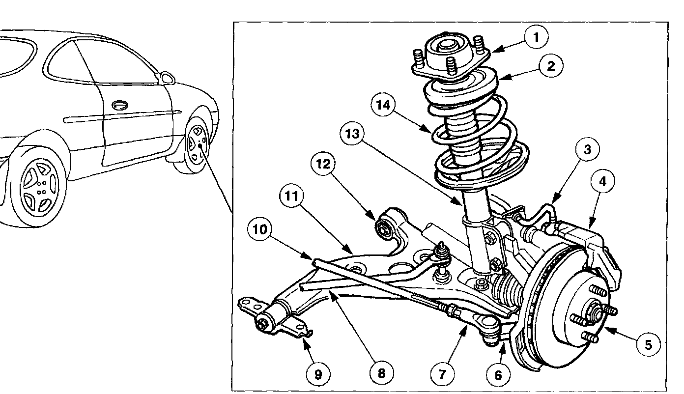 The front strut and spring assemblies can be disassembled to replace any of the individual components. The LH or RH front strut and spring assemblies can be replaced independently.