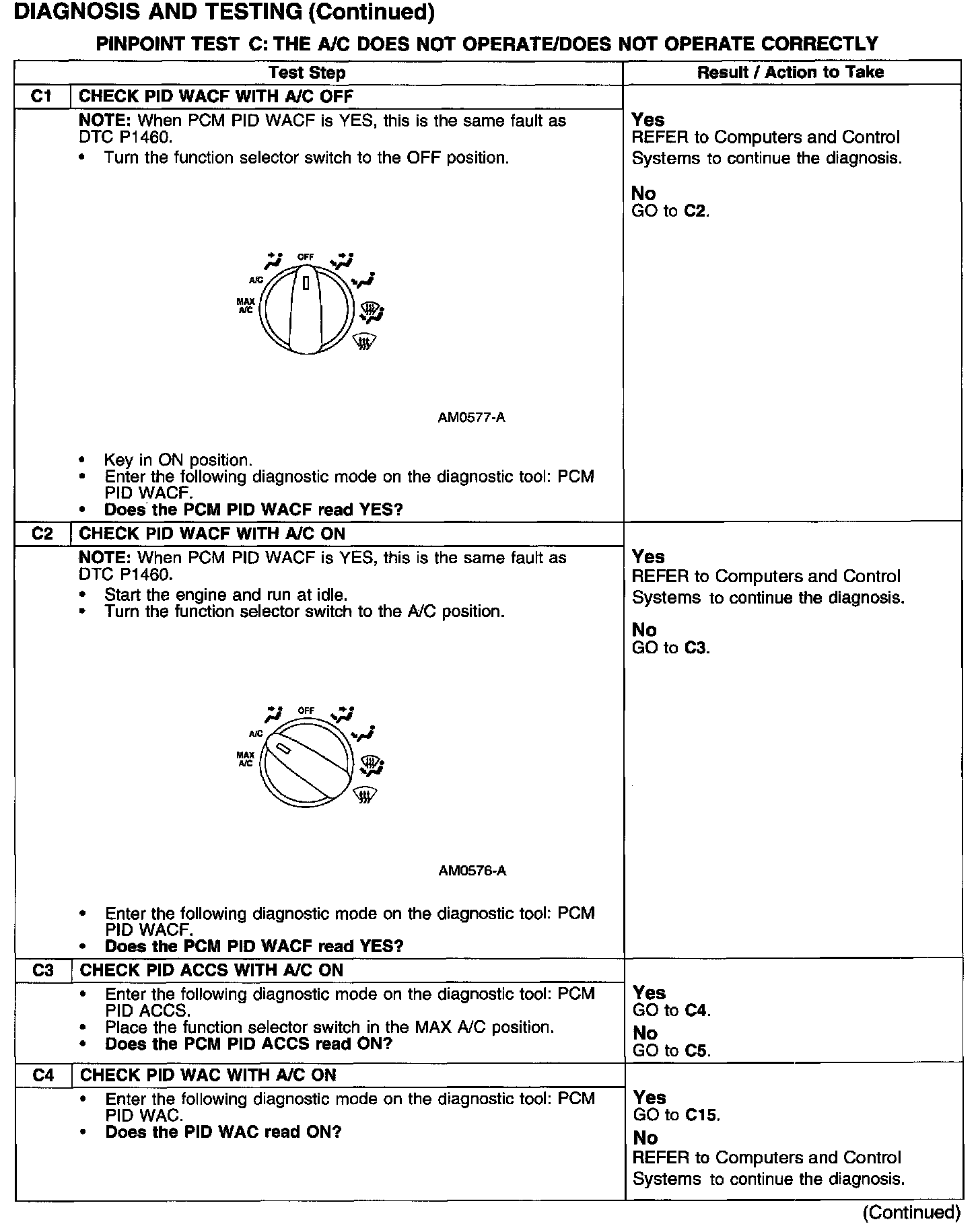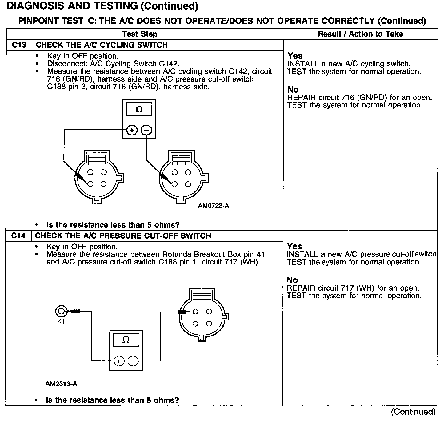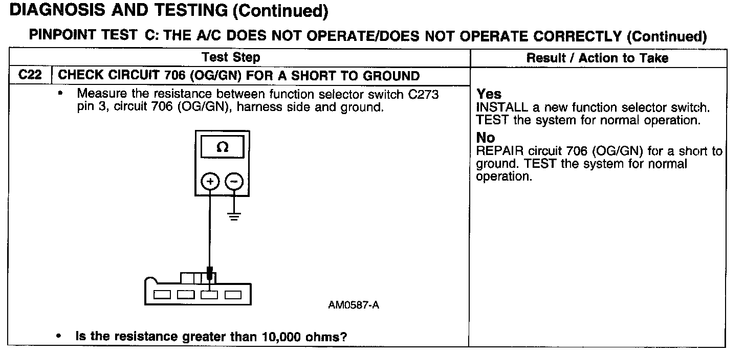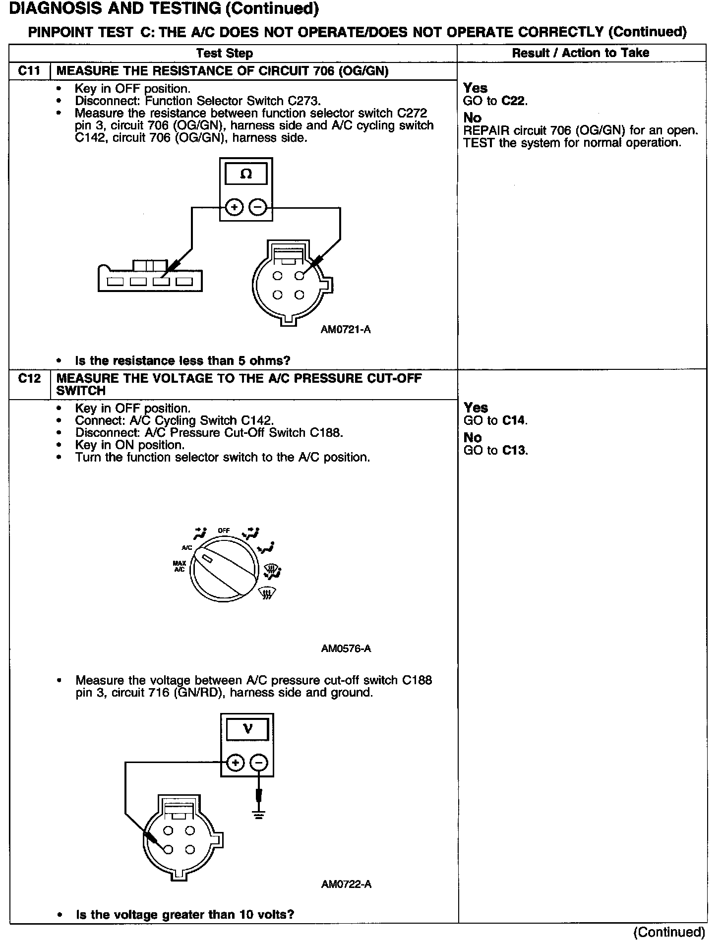 Test C: A/C Does Not Operate/Does Not Operate Correctly