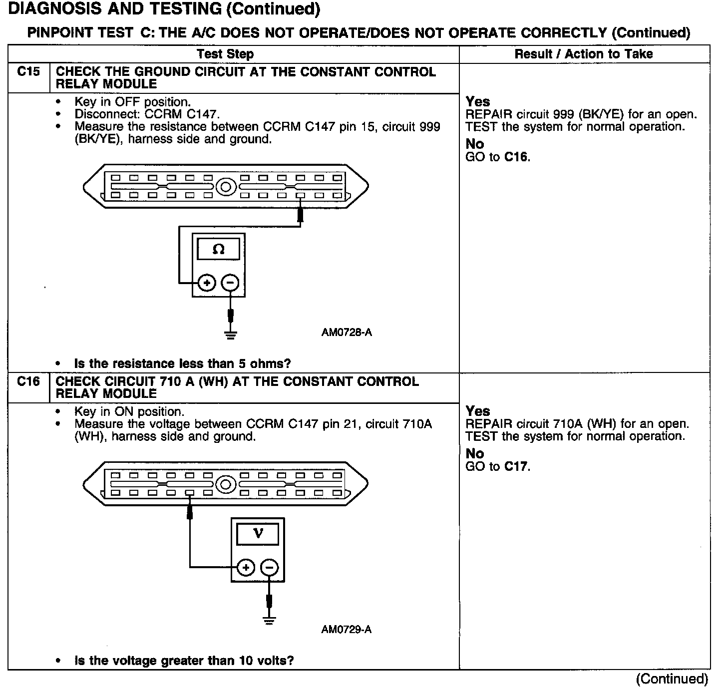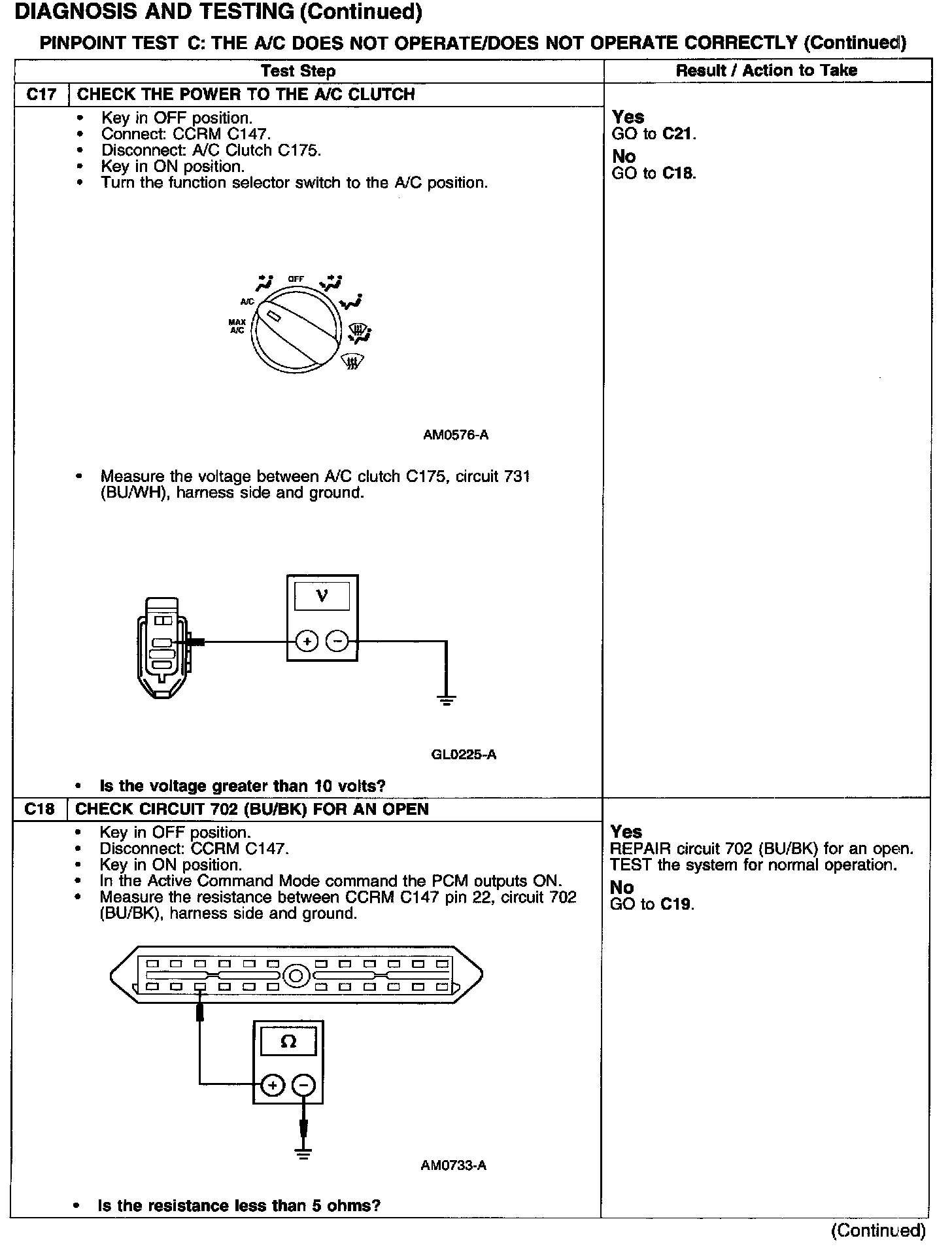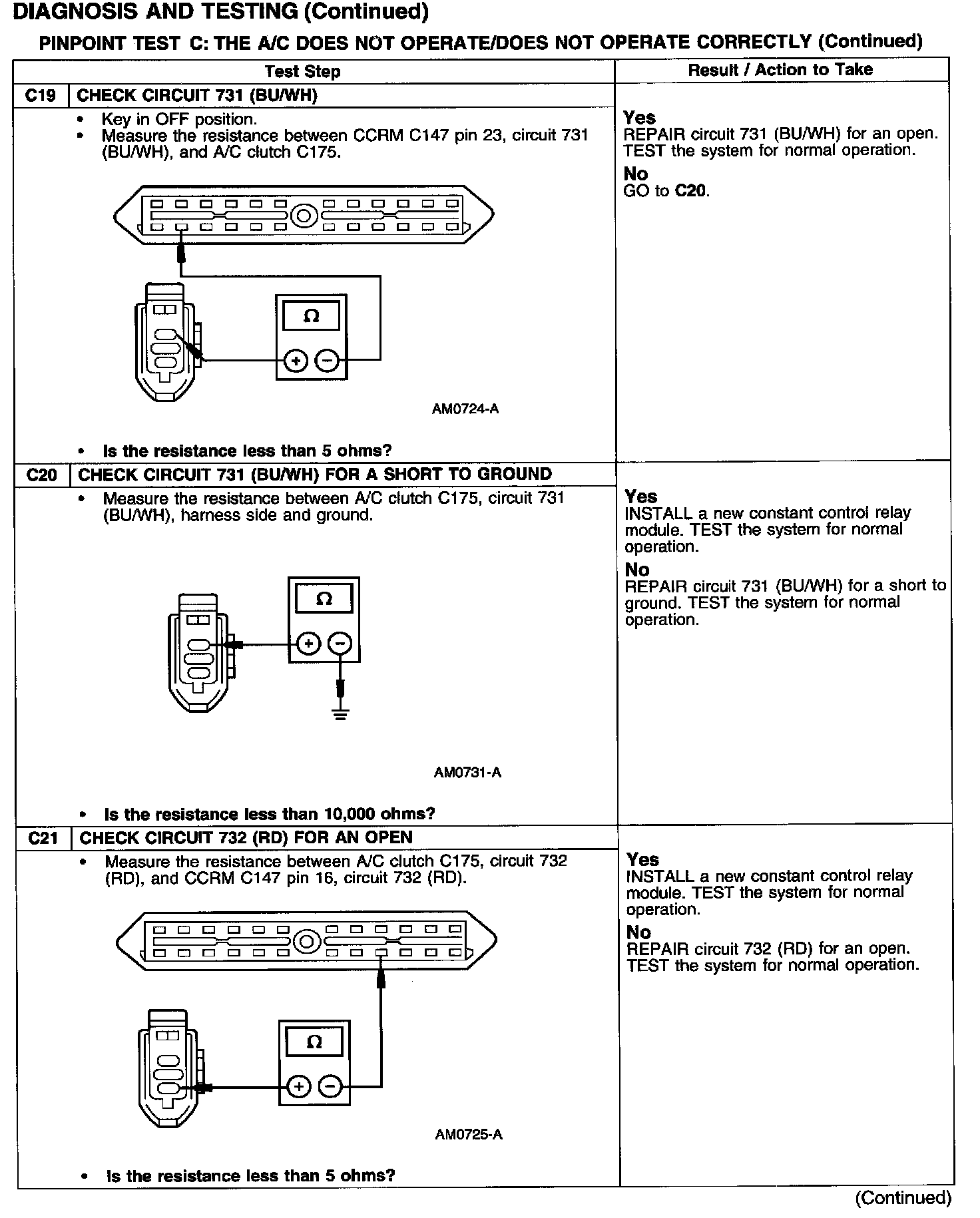 Test C: A/C Does Not Operate/Does Not Operate Correctly