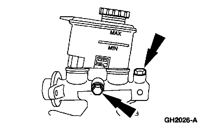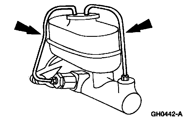 1. Disconnect the brake outlet lines from the brake master cylinder and cap the lines.