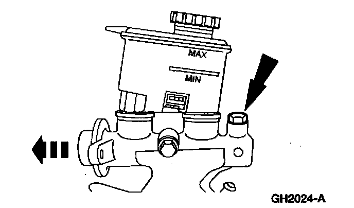 3. Loosen the plug in the front outlet port and slowly depress the primary piston.