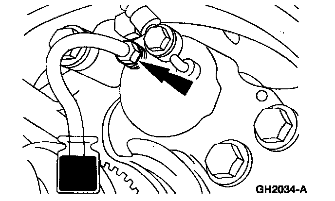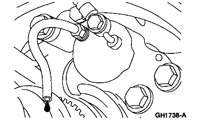 4. Attach a rubber drain hose to the RH rear bleeder screw and submerge the free end of the hose in a container partially filled with clean brake fluid.