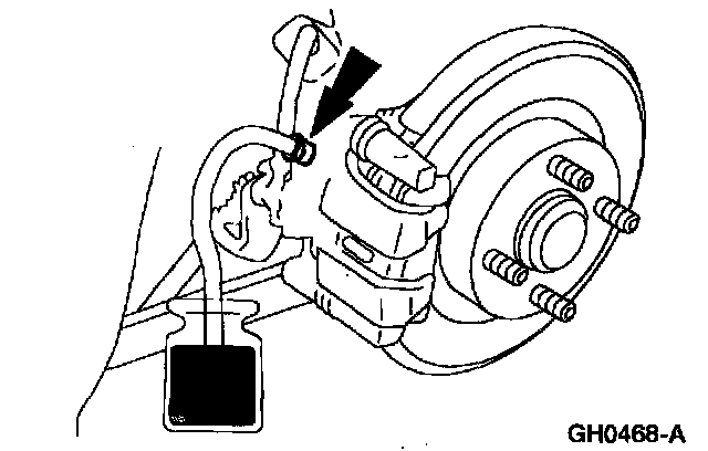 CAUTION: Do not allow the brake master cylinder reservoir to run dry during the bleeding operation. Keep the brake master cylinder reservoir filled with the specified brake fluid. Never reuse the brake fluid that has been drained from the hydraulic system.