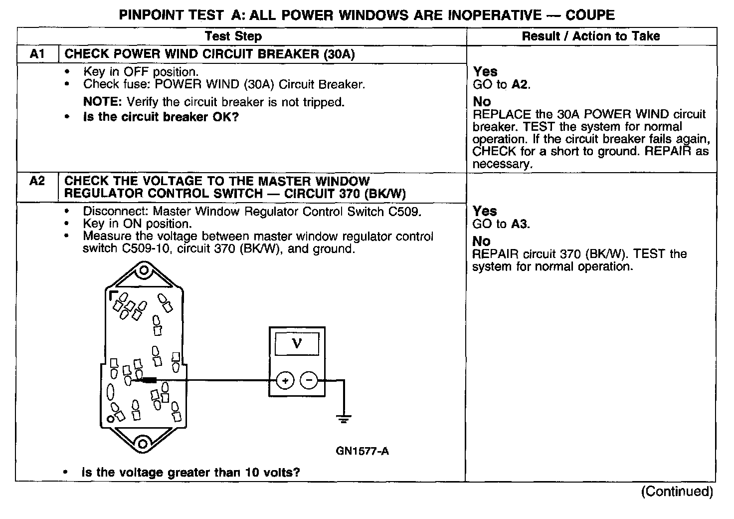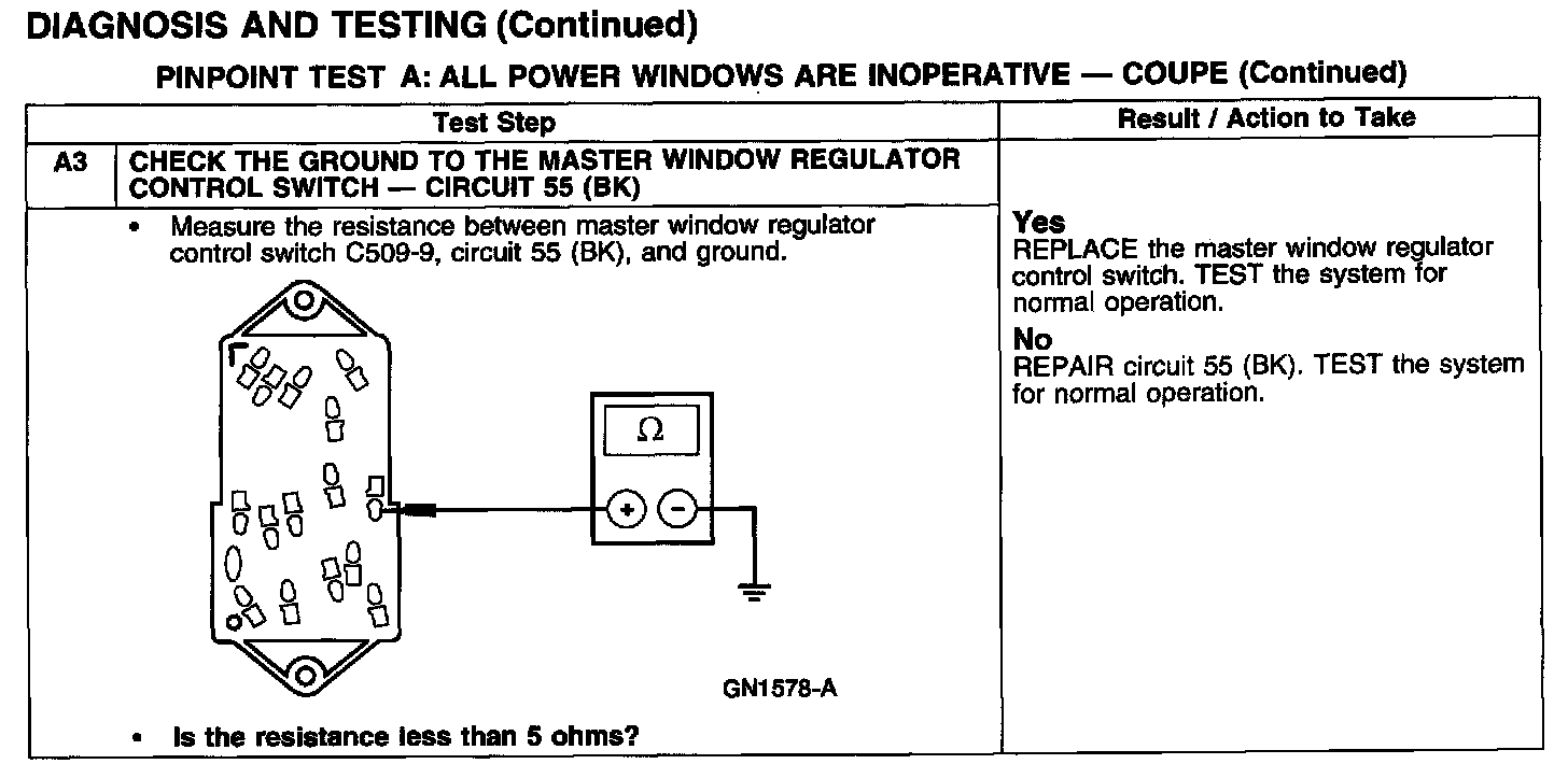 PINPOINT TEST A: ALL POWER WINDOWS ARE INOPERATIVE - COUPE
