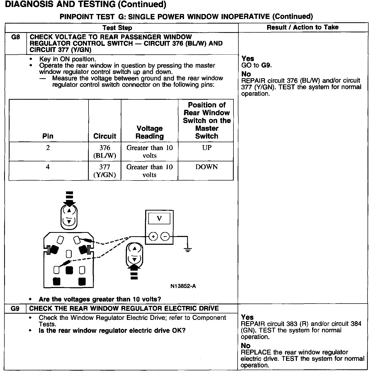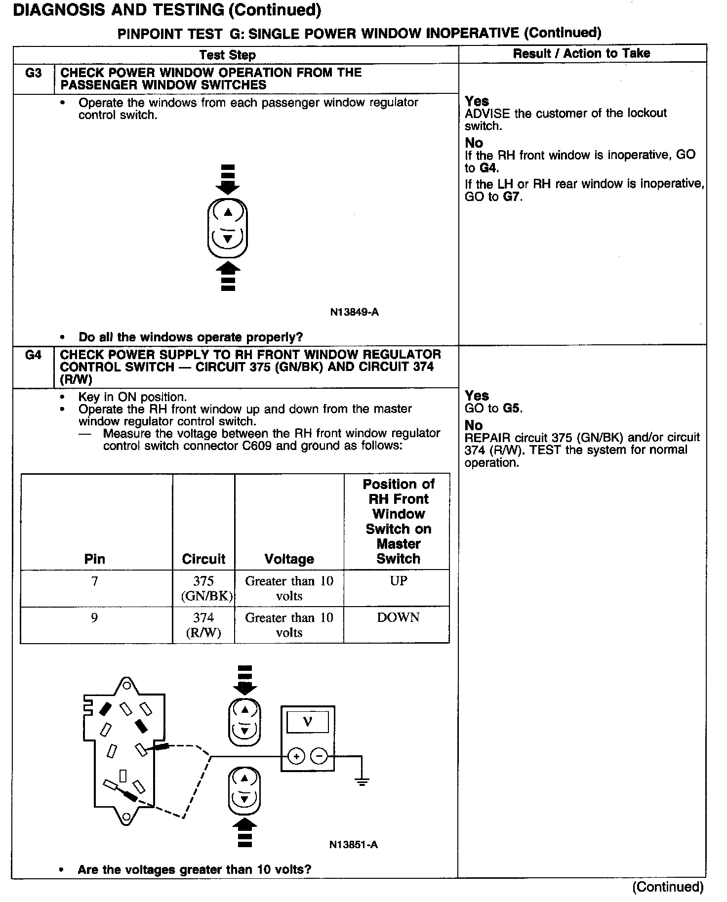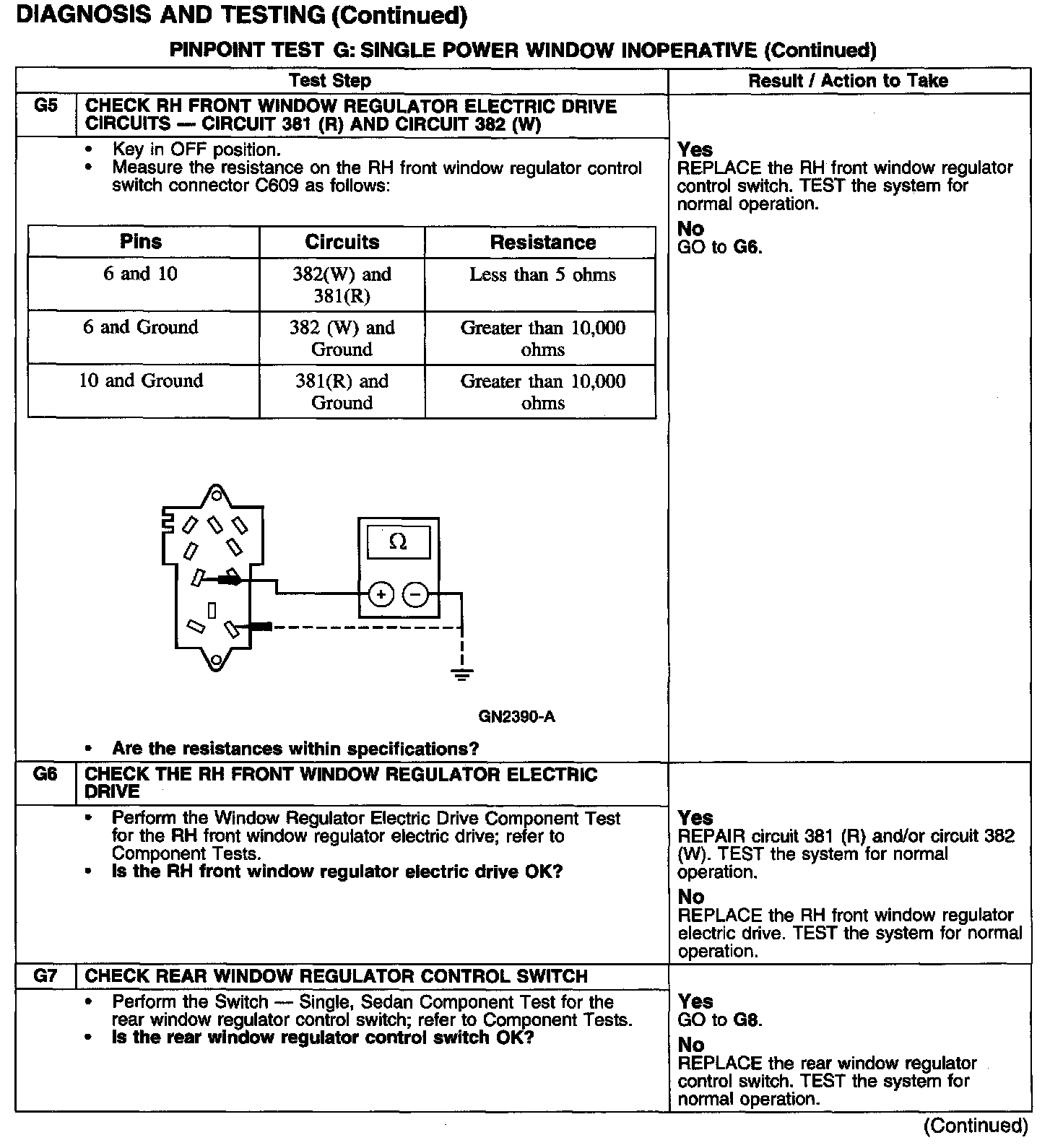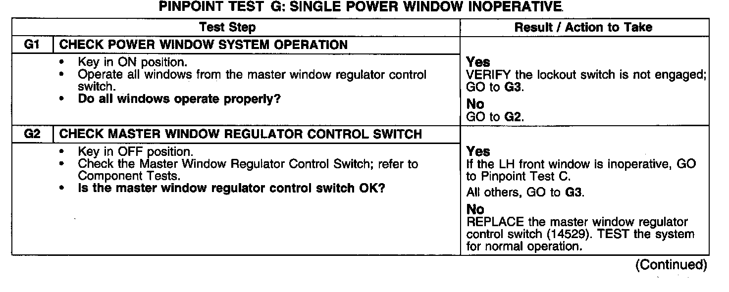 PINPOINT TEST G: SINGLE POWER WINDOW INOPERATIVE