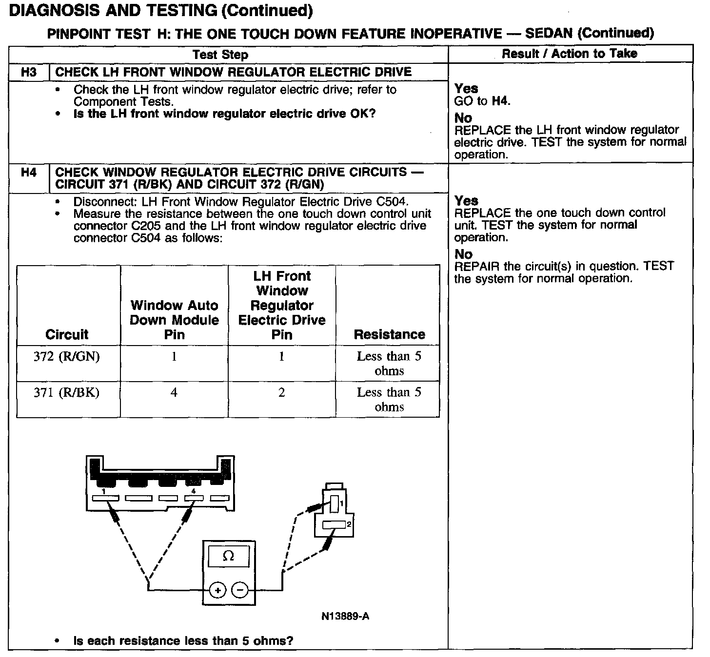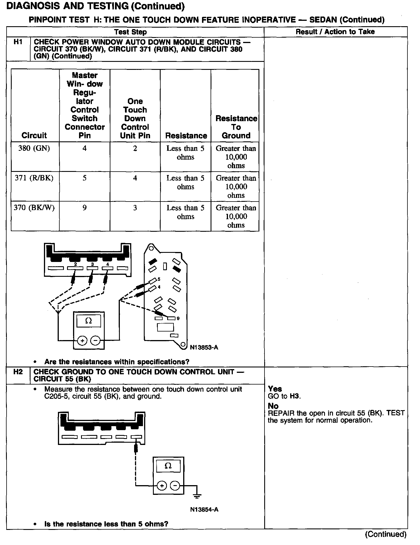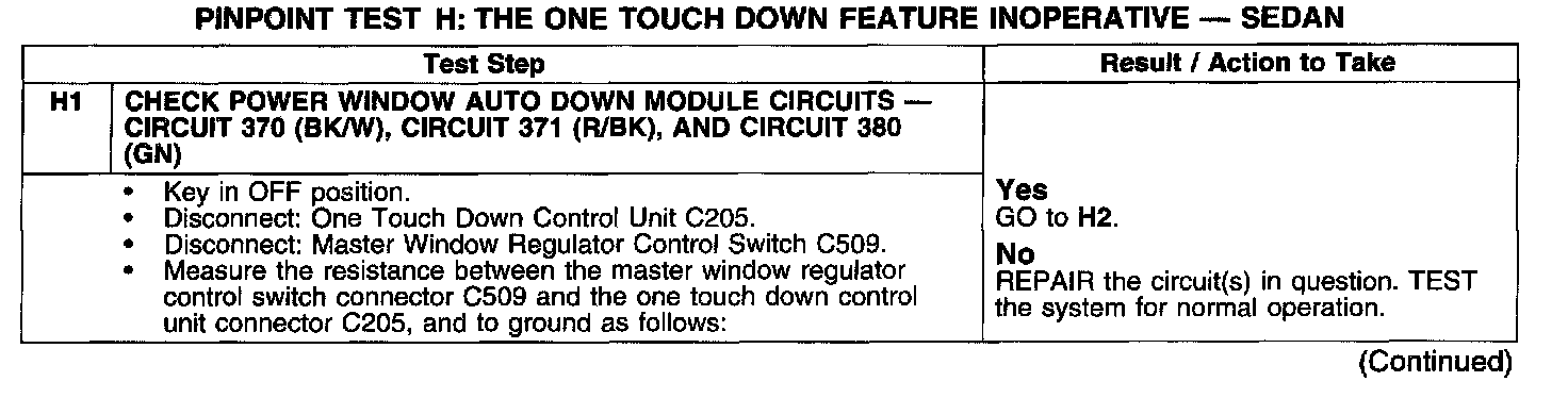 PINPOINT TEST H: THE ONE TOUCH DOWN FEATURE INOPERATIVE - SEDAN