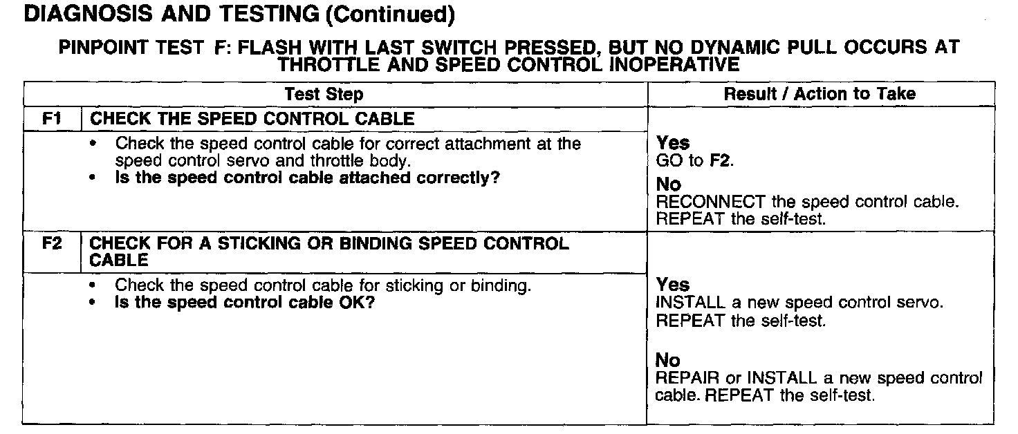 PINPOINT TEST F: FLASH WITH LAST SWITCH PRESSED, BUT NO DYNAMIC PULL OCCURS AT THROTTLE AND SPEED CONTROL INOPERATIVE