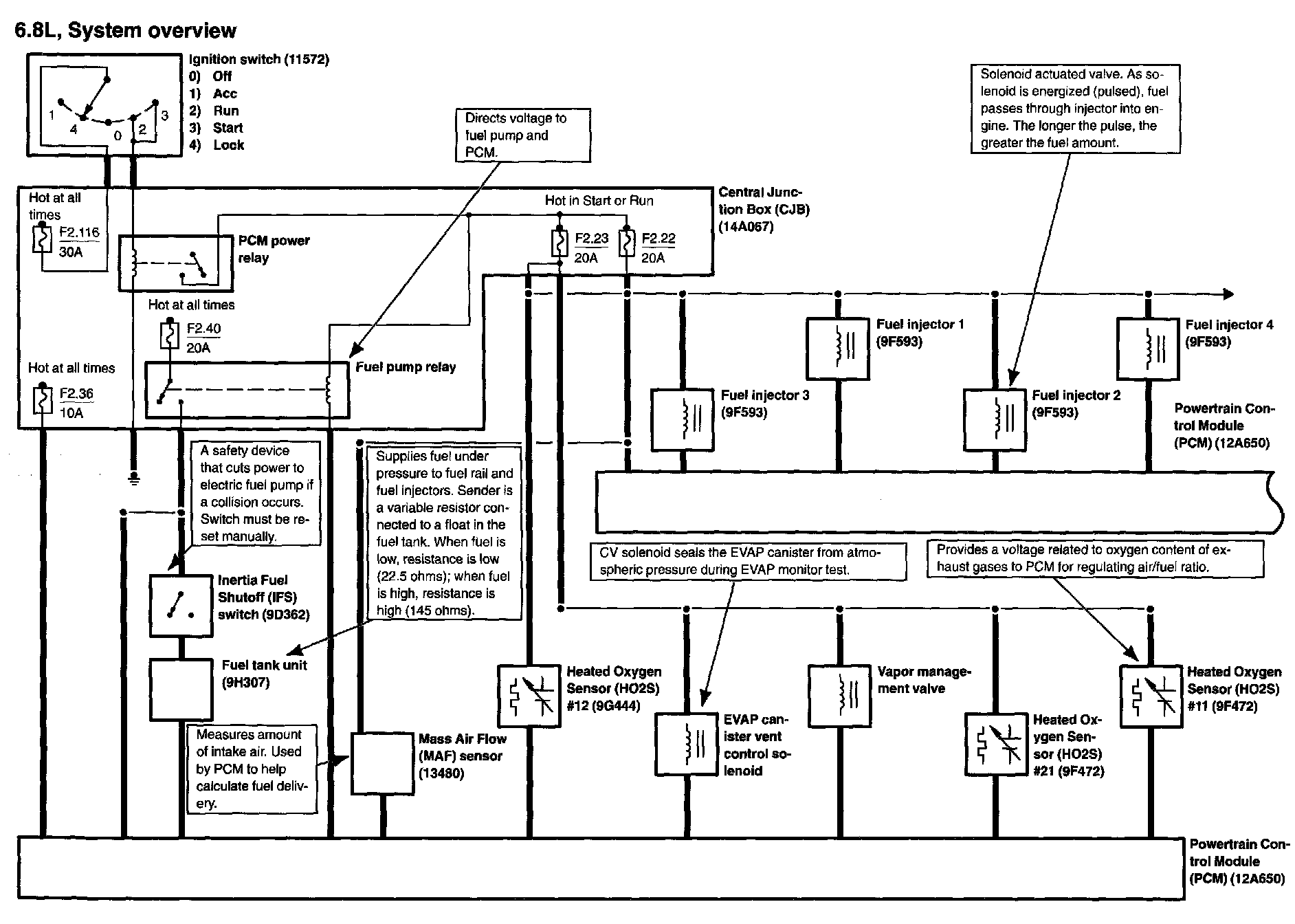 PLEASE NOTE: Some diagrams may appear to be missing because of gaps in the number sequences. These "gaps" are actually for diagrams that do not apply to the vehicle model selected.25-1, 6.8L, System Overview: