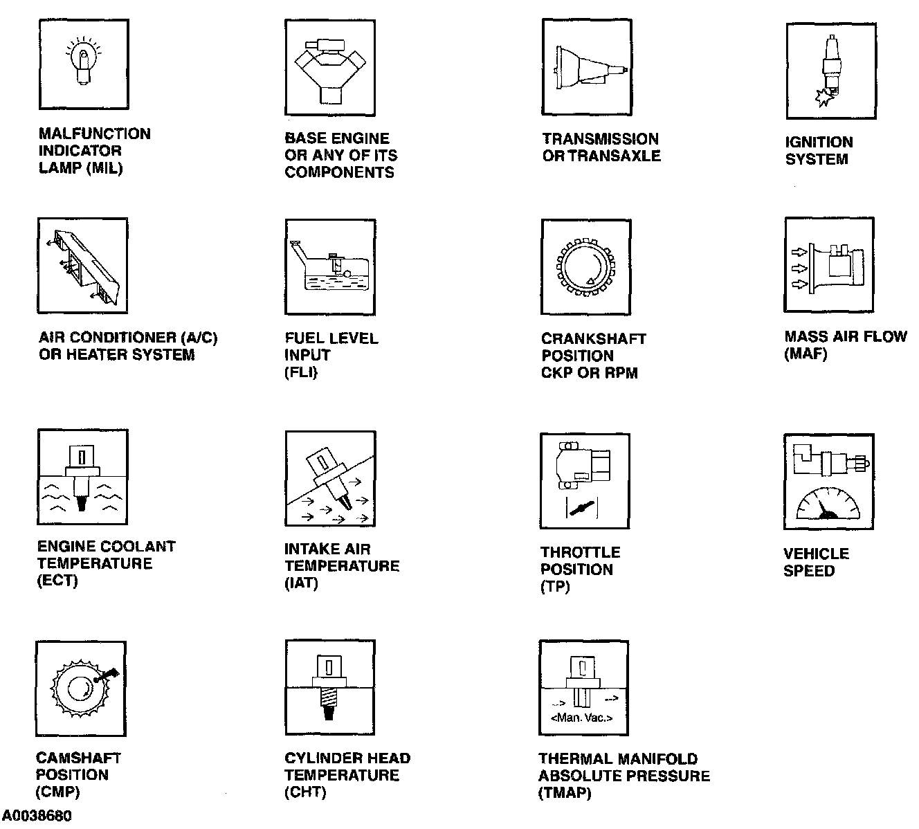 These icons are used in the illustrations of the On Board Diagnostic monitors.