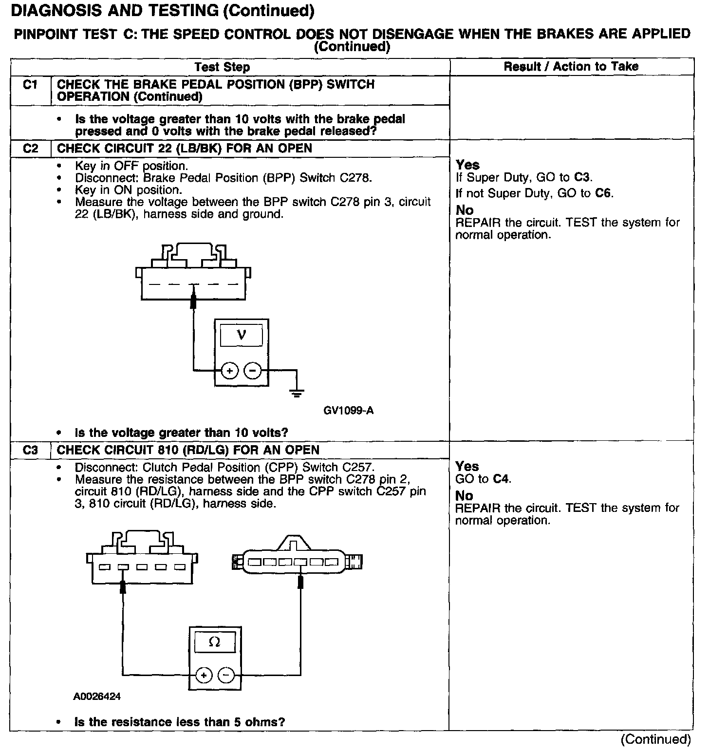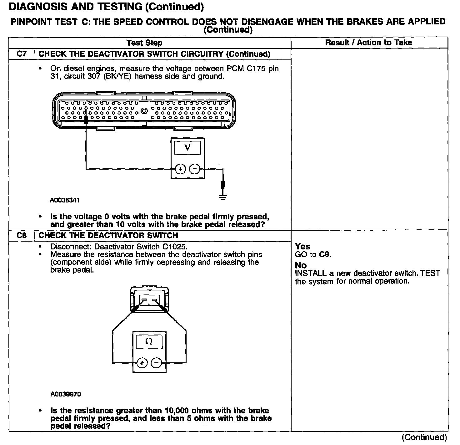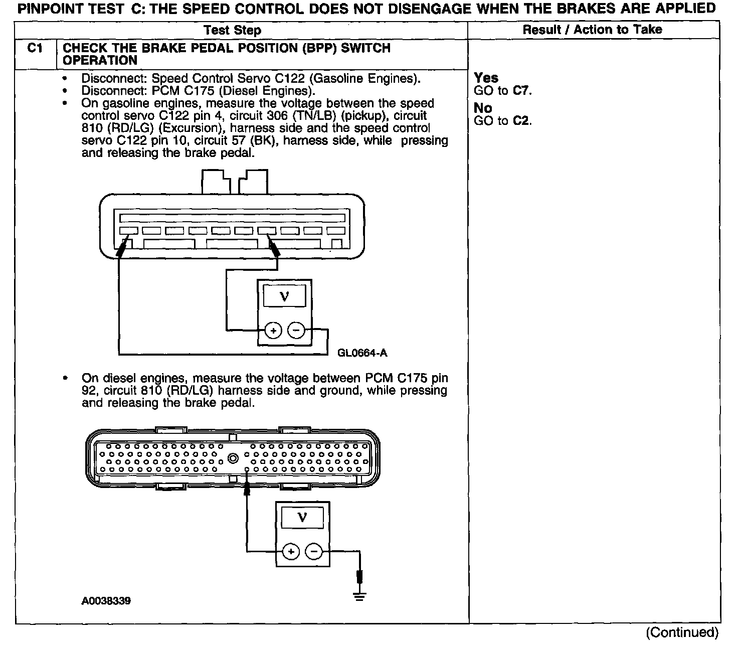 PINPOINT TEST C: THE SPEED CONTROL DOES NOT DISENGAGE WHEN THE BRAKES ARE APPLIED