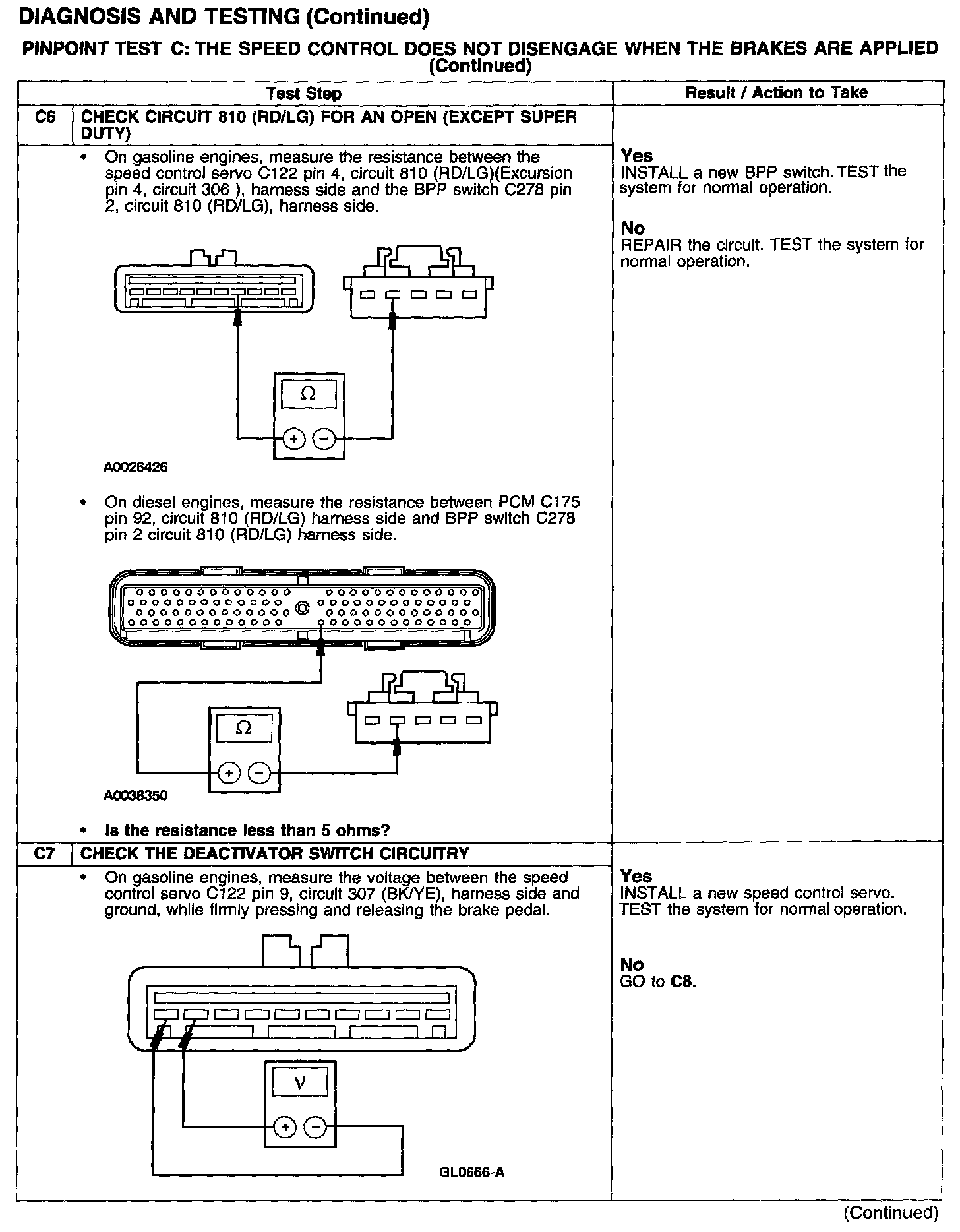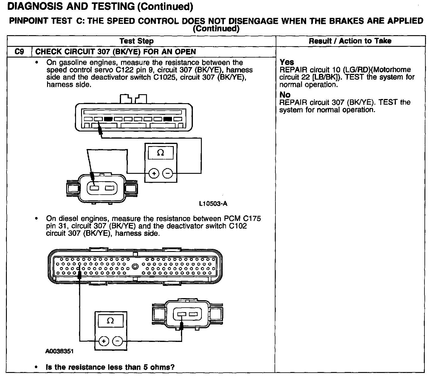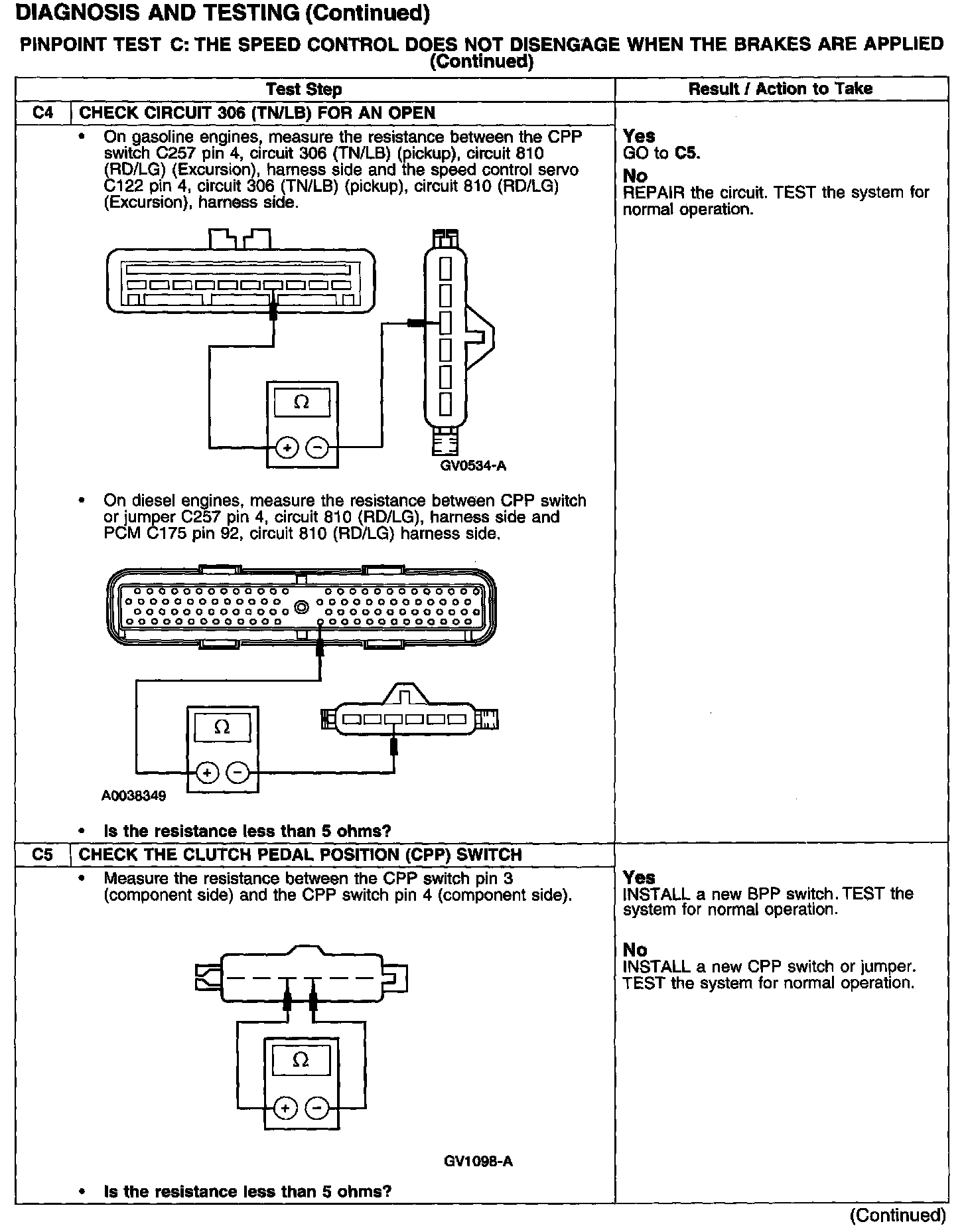 PINPOINT TEST C: THE SPEED CONTROL DOES NOT DISENGAGE WHEN THE BRAKES ARE APPLIED