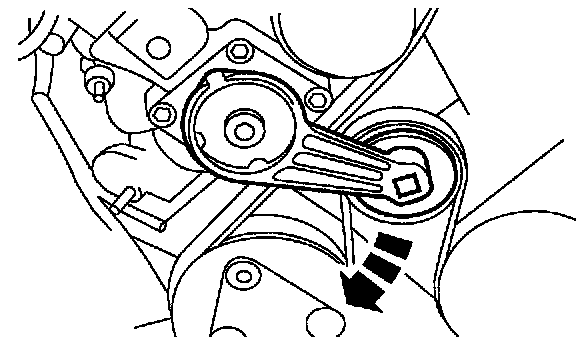 10. Rotate the belt tensioner counterclockwise and remove the belt from the generator pulley.