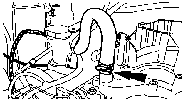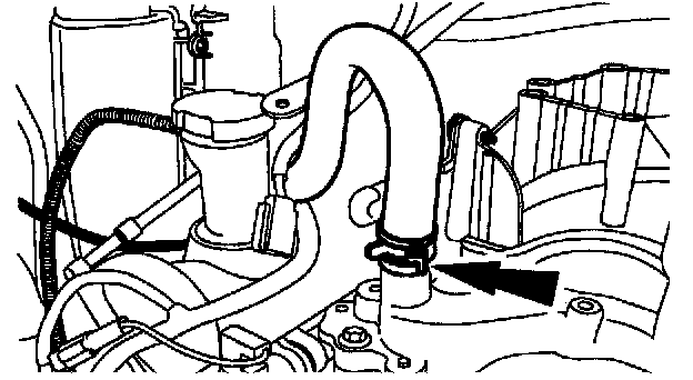 5. Install the heater water hose and position the clamp.