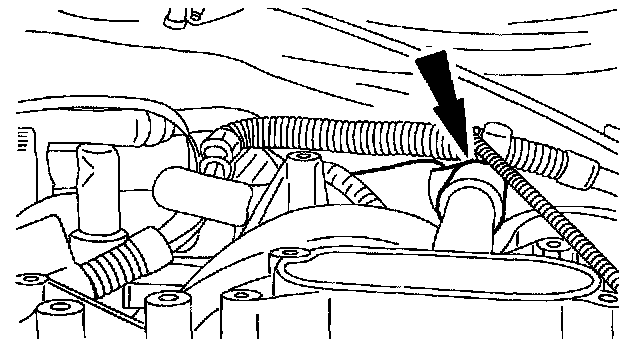 19. Disconnect the evaporative emission canister purge valve vacuum hose from the throttle body adapter.