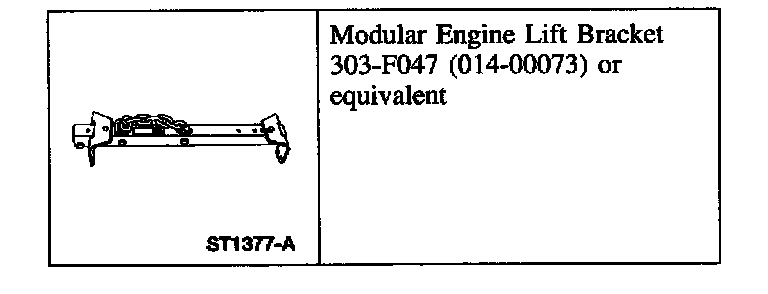 1. Position the engine in the vehicle and remove the Modular Engine Lift Bracket and the jack supporting the transmission.