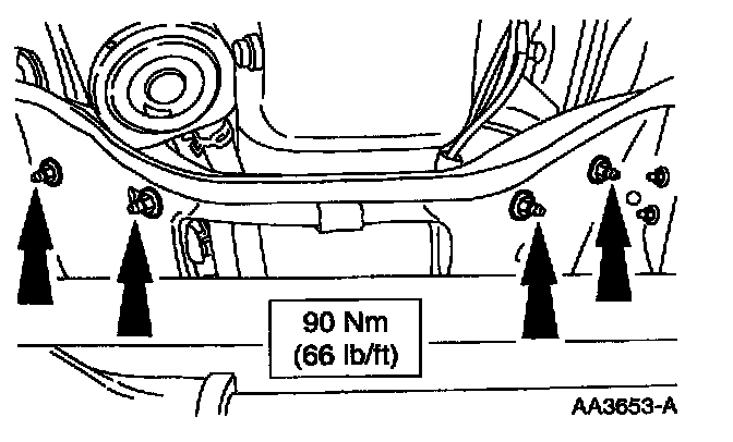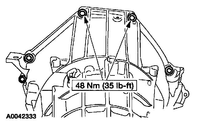 7. Install and tighten the four new nuts retaining the torque converter.