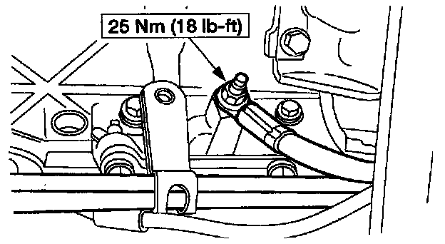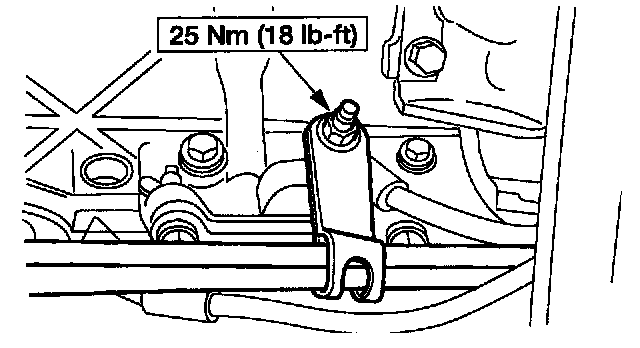 19. Install the remaining transmission-to-engine bolts and fuel line bracket.