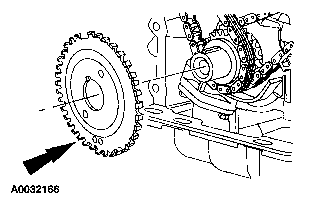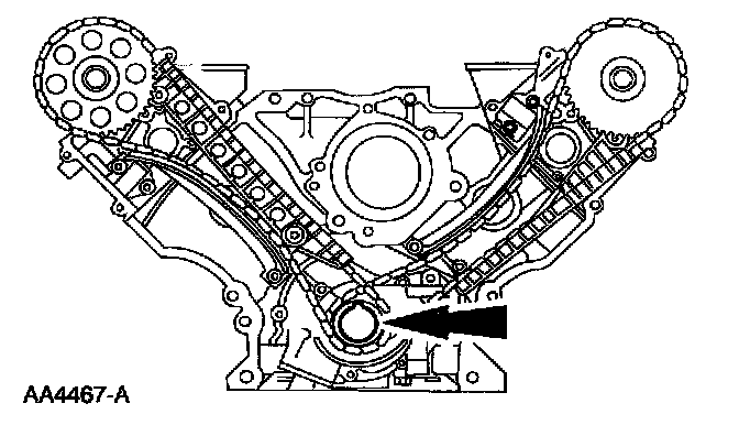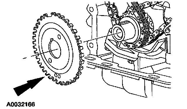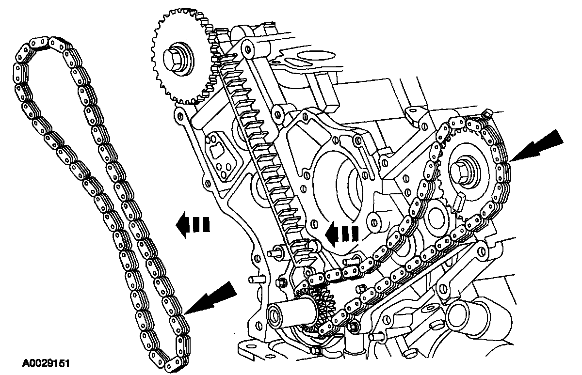 ^ Remove the LH timing chain and crankshaft sprocket.