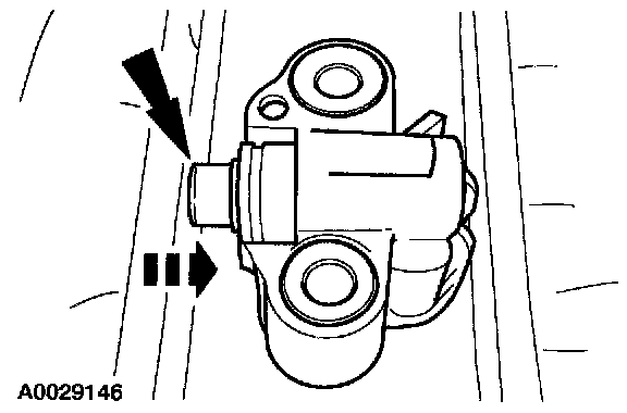 2. Install a retaining clip on the tensioner to hold the plunger in during installation.