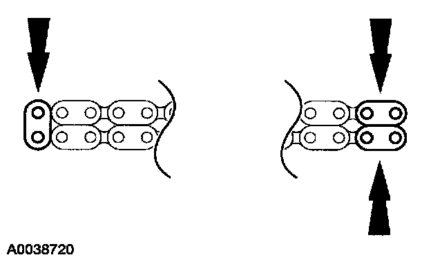 4. If the copper links are not visible, mark two links on one end and one link on the other end, and use as timing marks.
