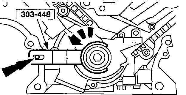 1 Rotate the LH camshaft with the Camshaft Positioning Tool until the timing mark is approximately at 12 o'clock.