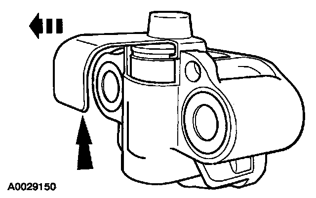 13. NOTE: The LH timing chain tensioner arm has a bump near the dowel hole, for identification.