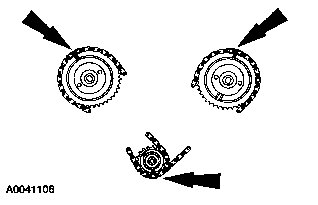 ^ Remove the RH timing chain from the camshaft sprocket.