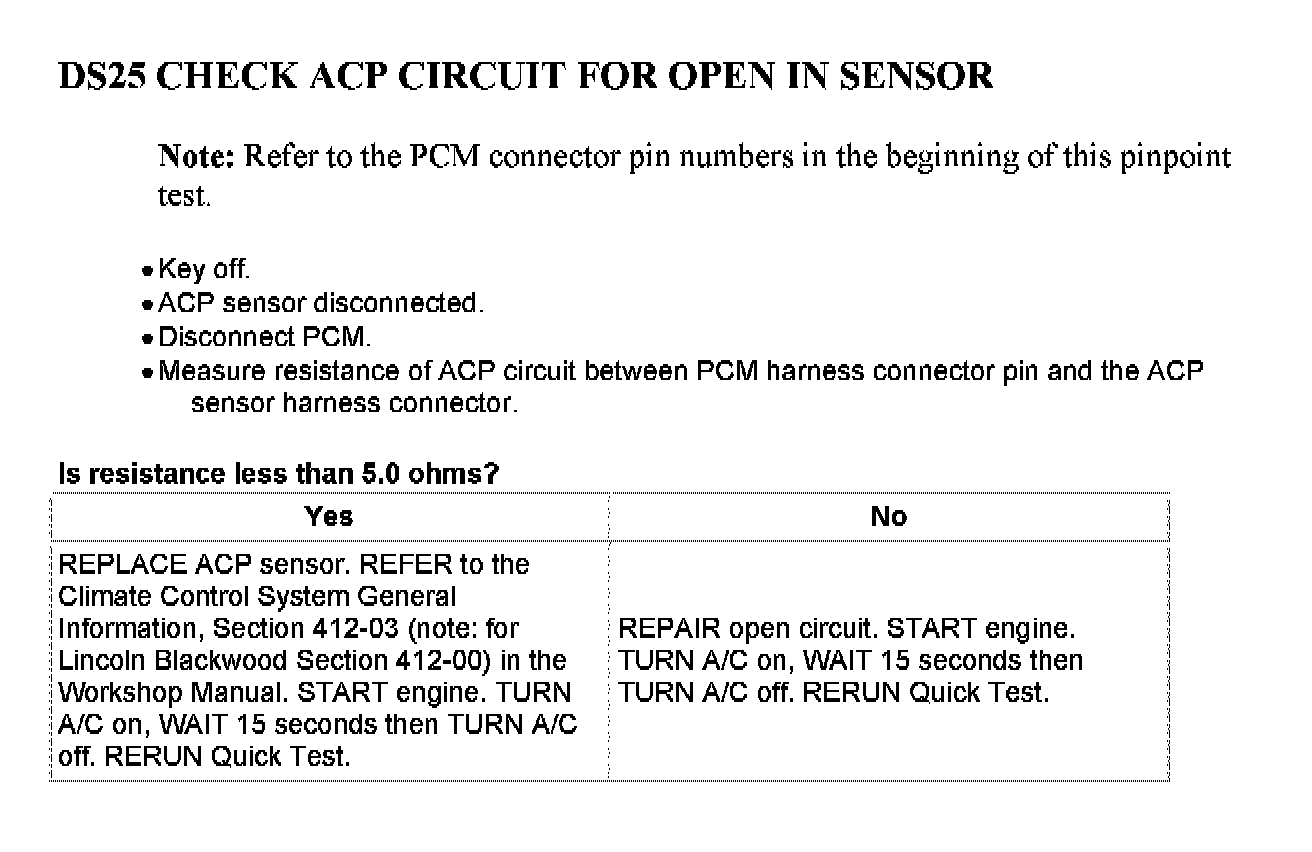 Tests DS: Air Conditioning Pressure (ACP) Sensor