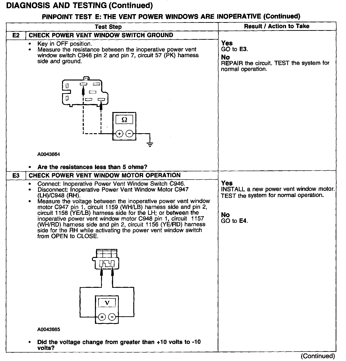 PINPOINT TEST E: THE VENT POWER WINDOWS ARE INOPERATIVE