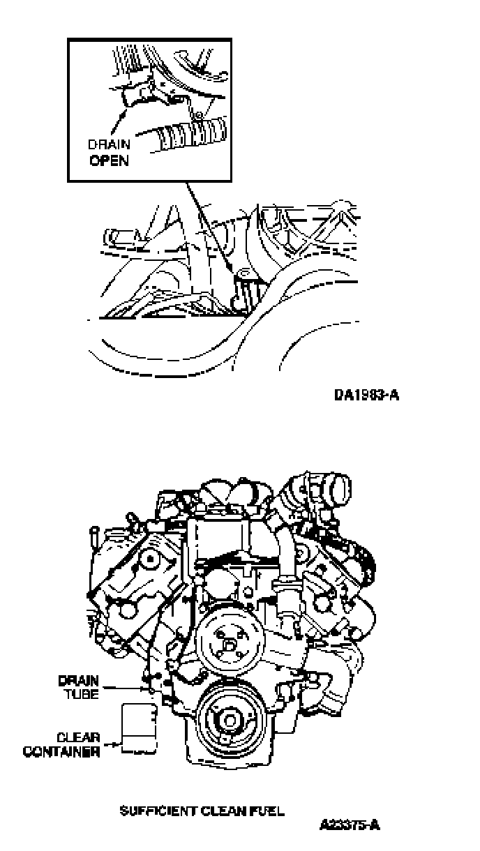 Flow out of the drain should be a steady stream. Insufficient flow could indicate fuel supply or fuel system problems.
