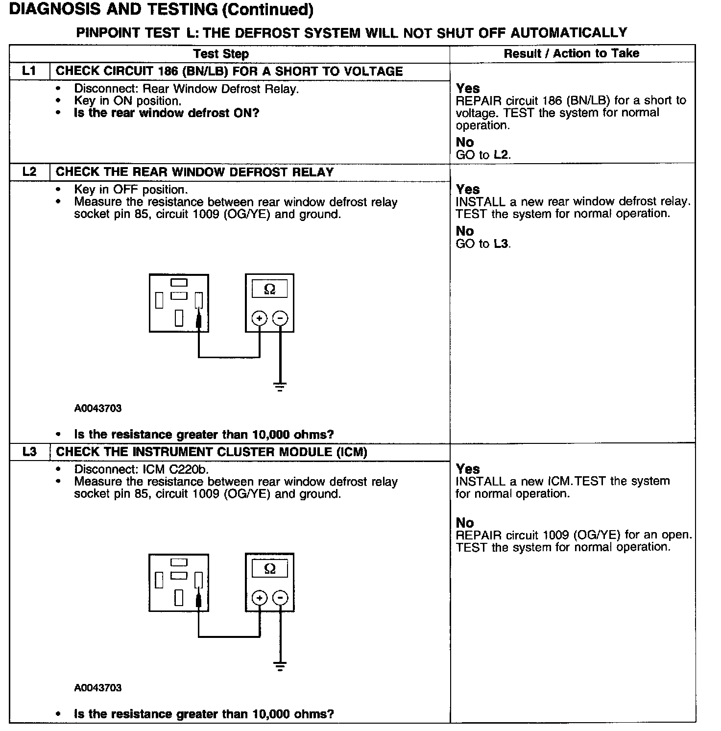 PINPOINT TEST L: THE DEFROST SYSTEM WILL NOT SHUT OFF AUTOMATICALLY