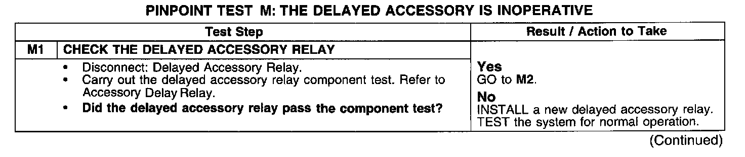 PINPOINT TEST M: THE DELAYED ACCESSORY IS INOPERATIVE