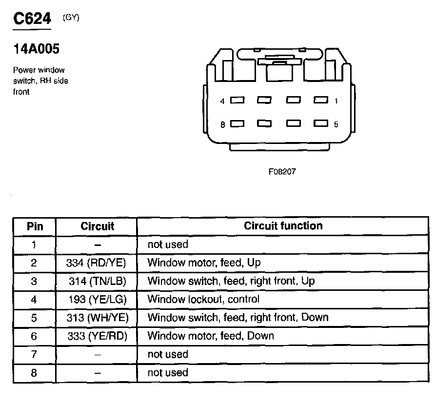 Power Window Switch, RH Side Front