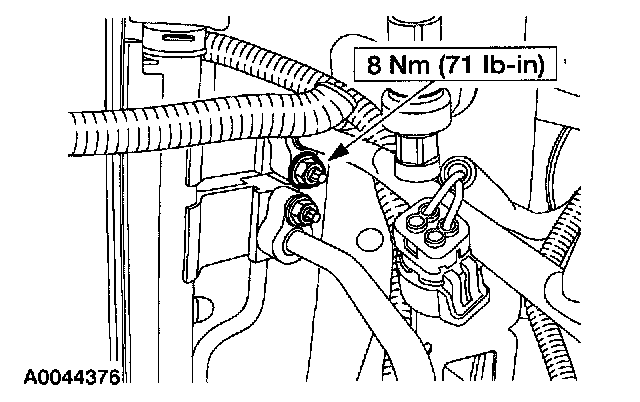 6. Loosen the bolt and remove the compressor manifold and tube assembly.