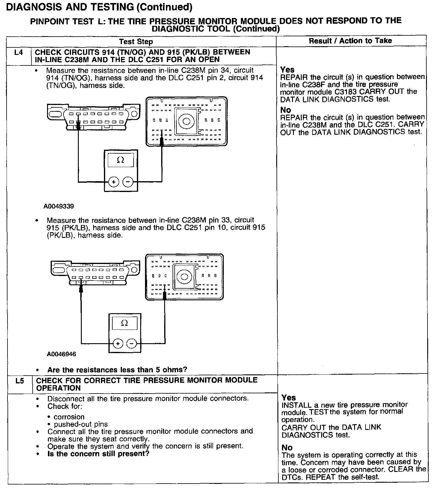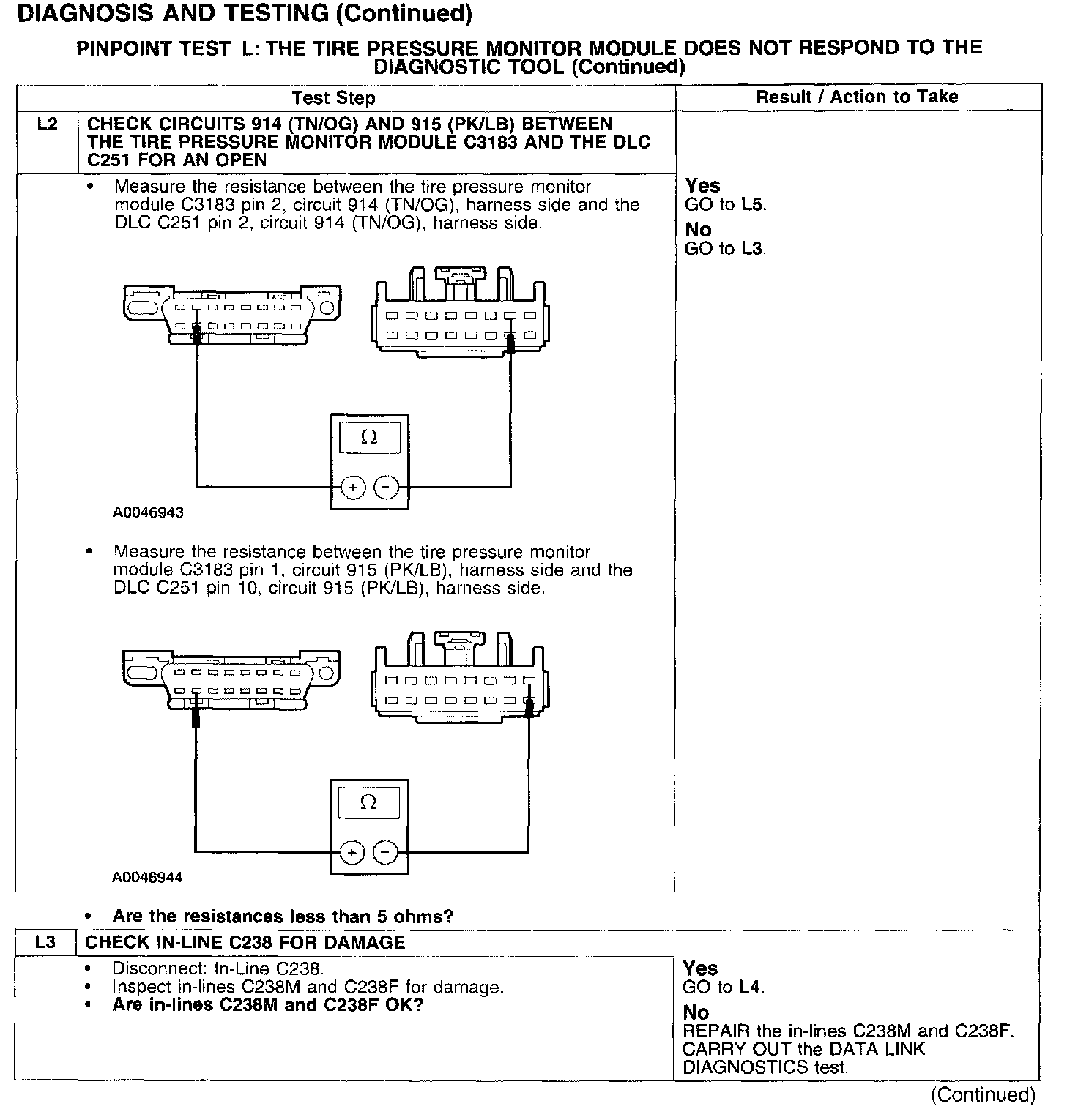 PINPOINT TEST L: THE TIRE PRESSURE MONITOR MODULE DOES NOT RESPOND TO THE DIAGNOSTIC TOOL