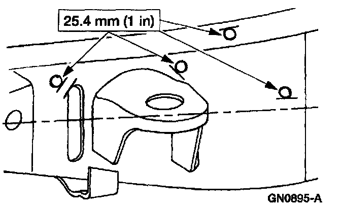 - The drilled hole is at least the specified distance from any other existing bracket or component of the frame.