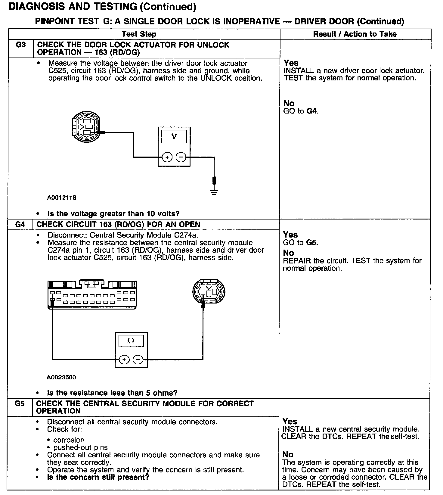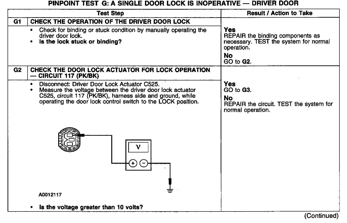 PINPOINT TEST G: A SINGLE DOOR LOCK IS INOPERATIVE - DRIVER DOOR