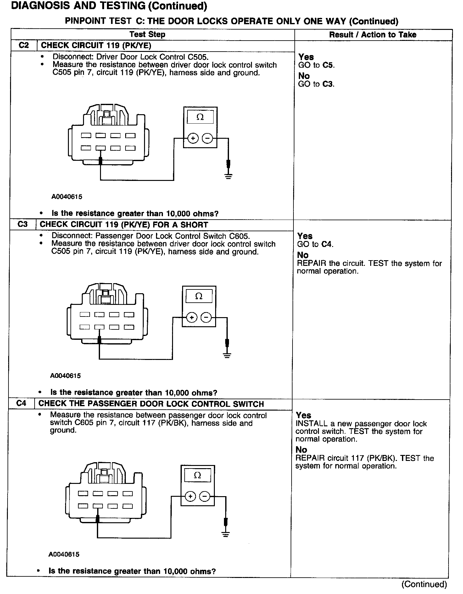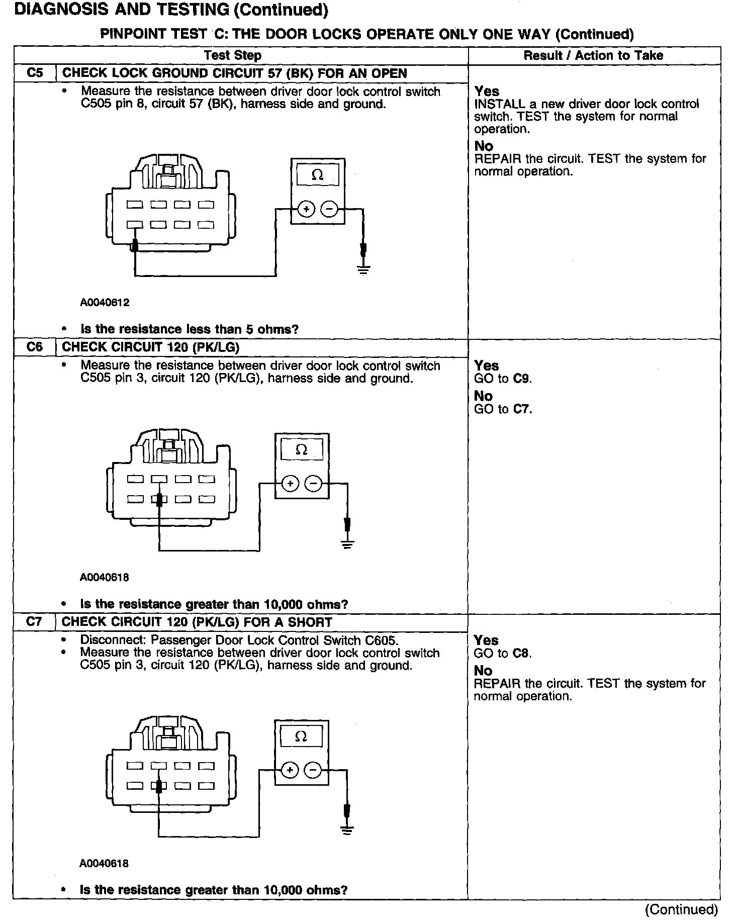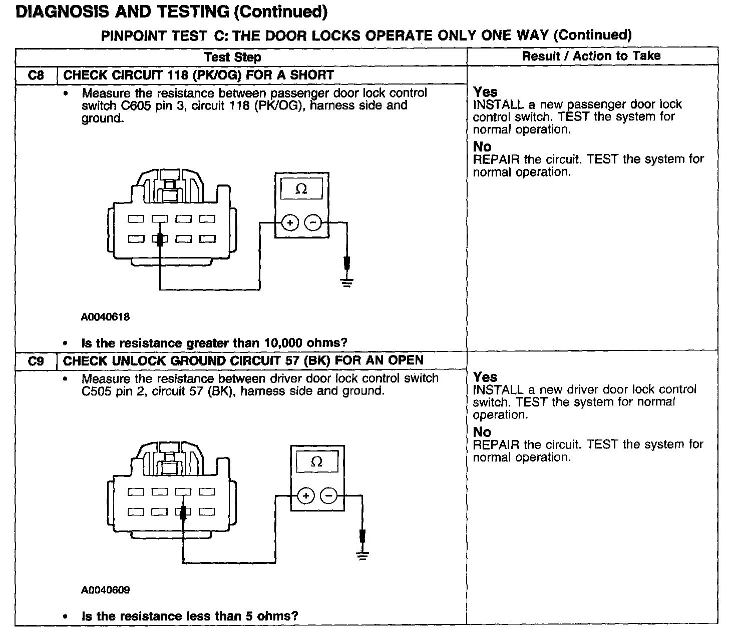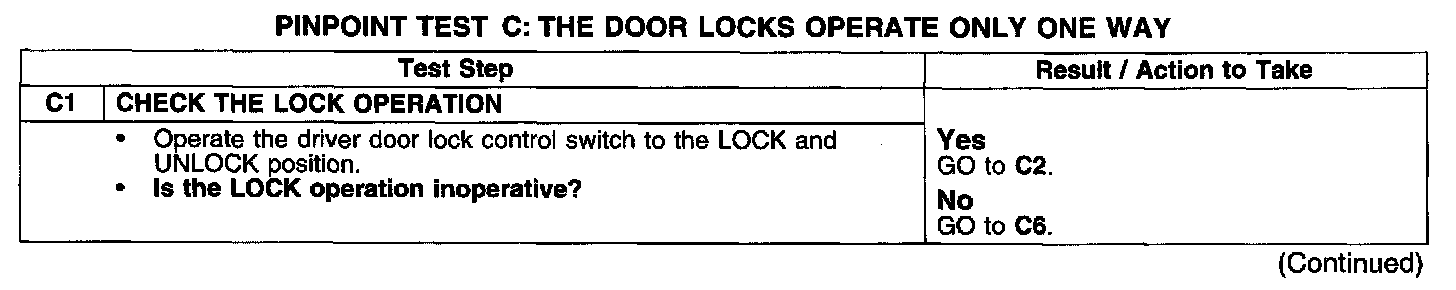 PINPOINT TEST C: THE DOOR LOCKS OPERATE ONLY ONE WAY