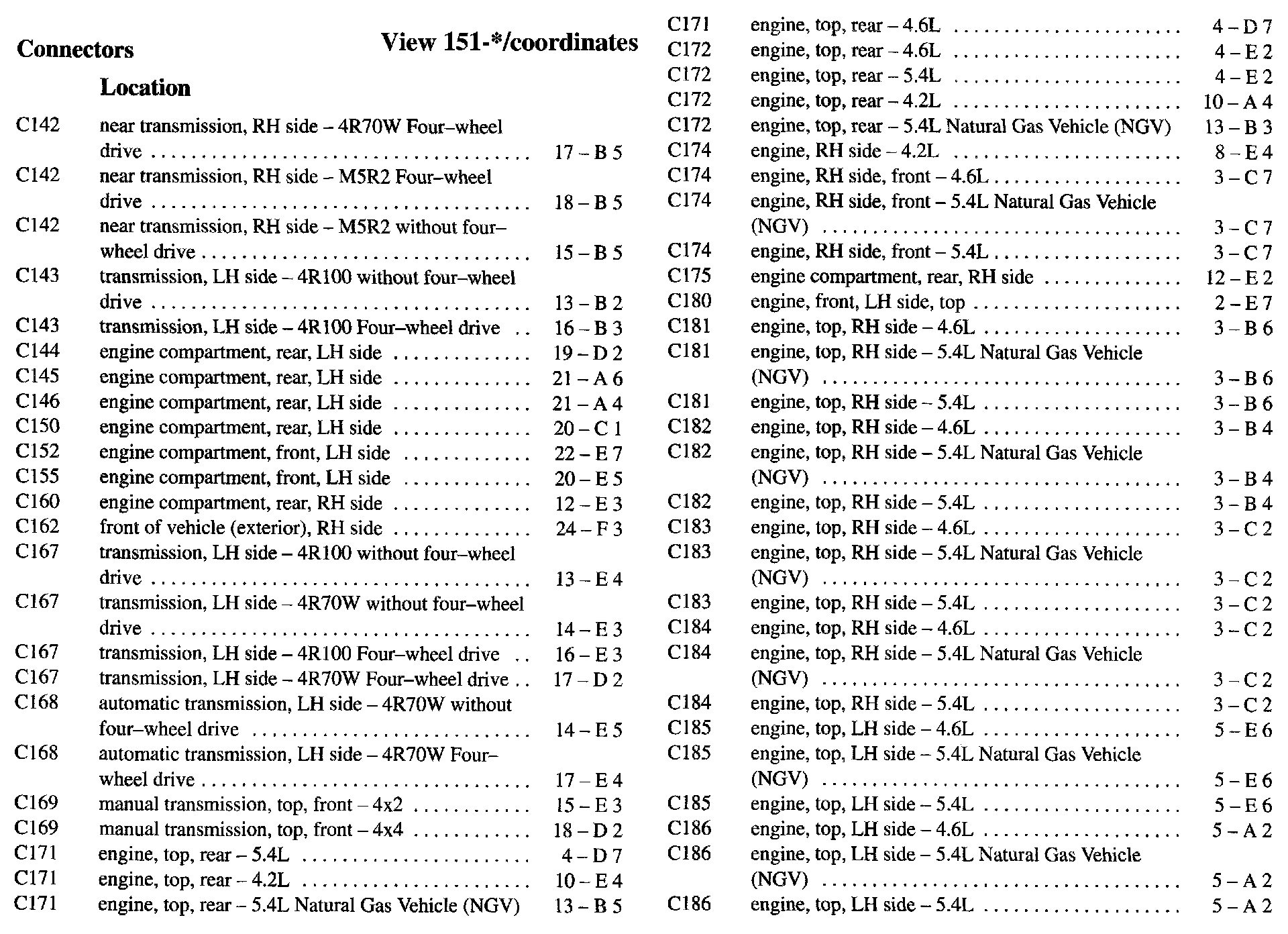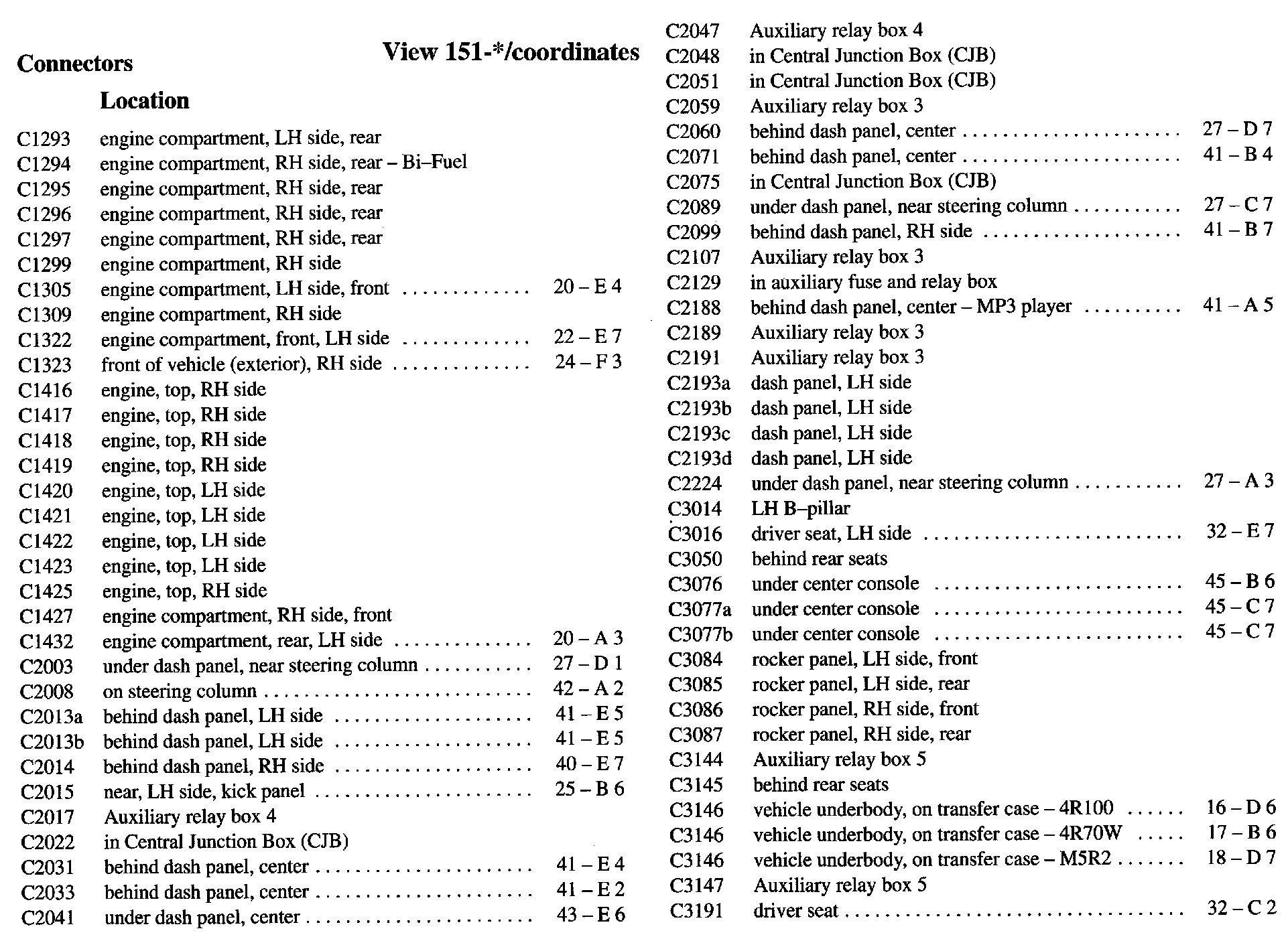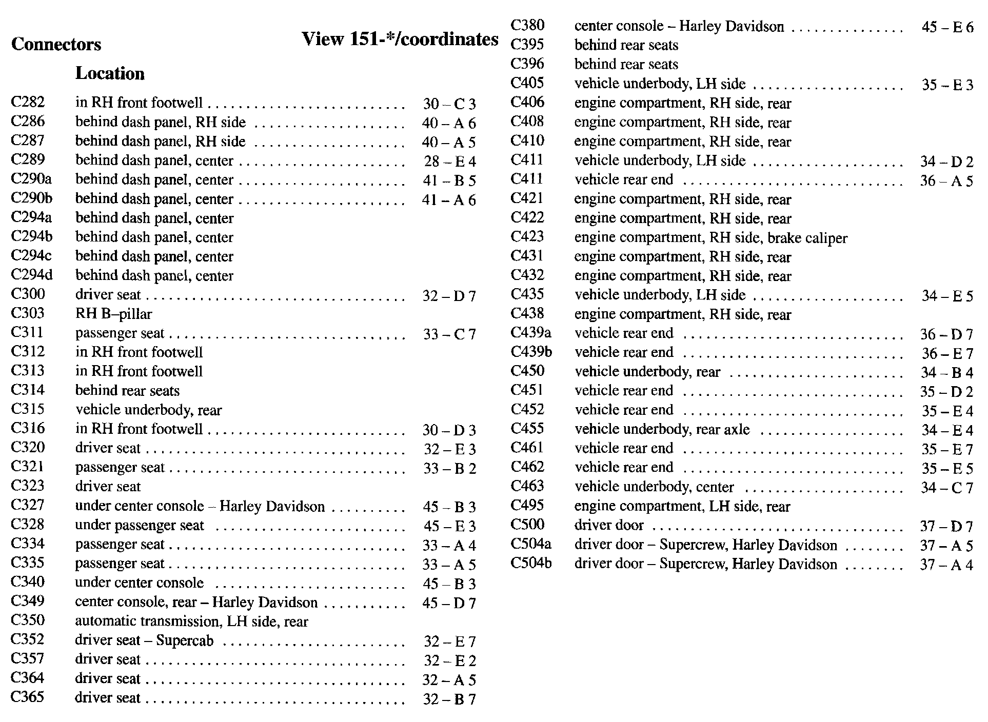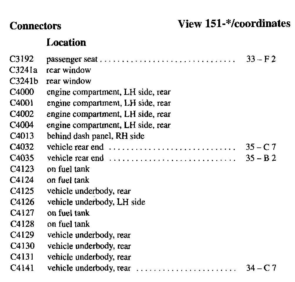 PLEASE NOTE: If a link on the Connector Location Index to a View is not provided, that means that the Connector and/or View in question does NOT apply to the vehicle model selected.
