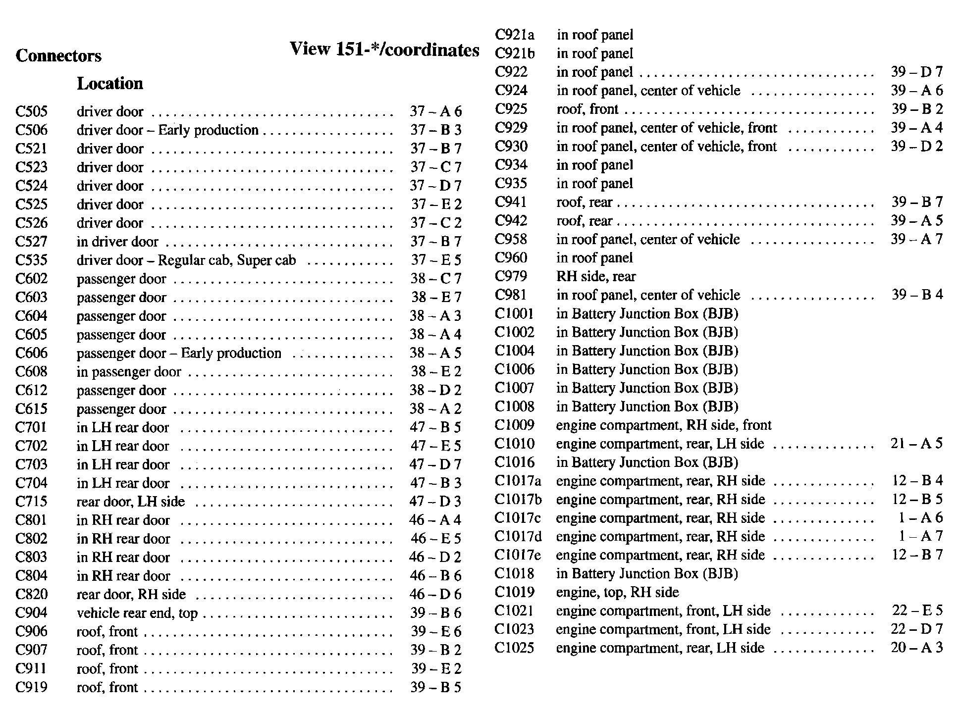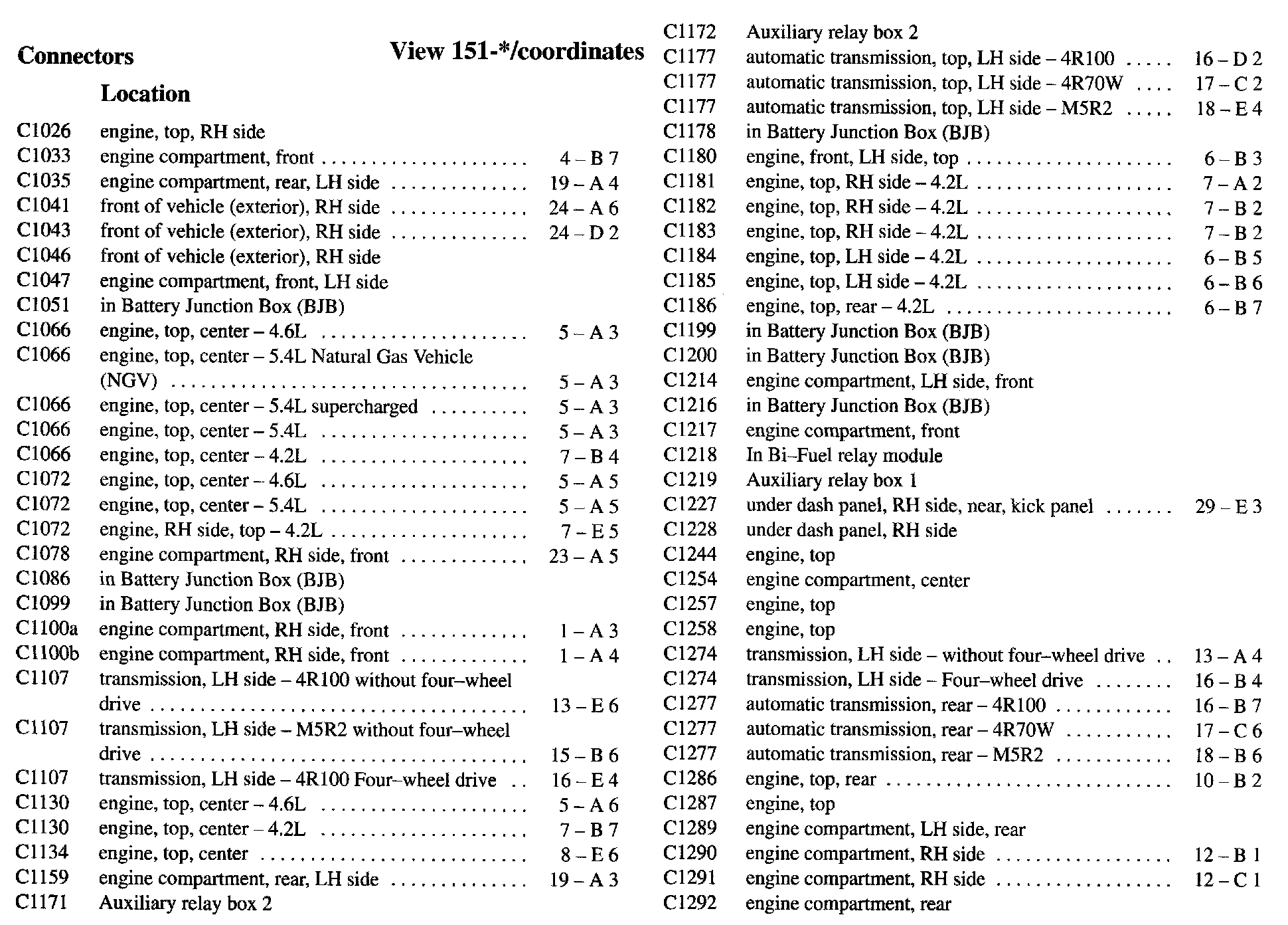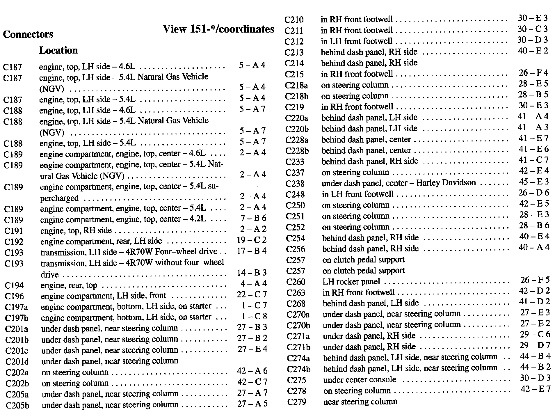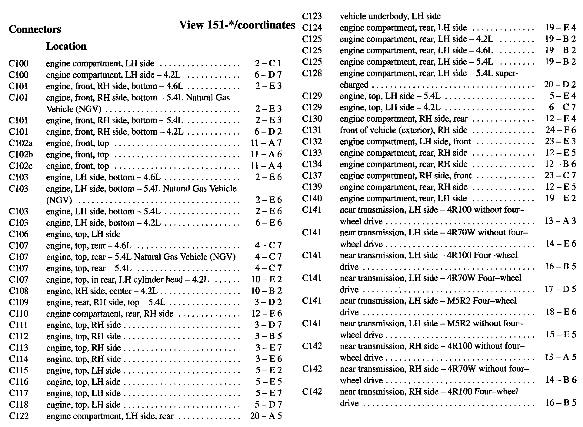 PLEASE NOTE: If a link on the Connector Location Index to a View is not provided, that means that the Connector and/or View in question does NOT apply to the vehicle model selected.