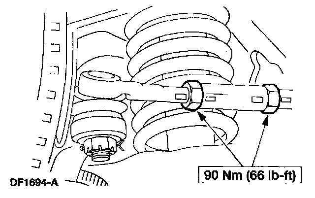 2 Hold the adjuster sleeve in position with locking type pliers positioned against the lower control arm.
